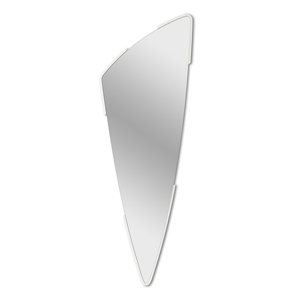 Shaped mirror with cantilevered mirror. Lacquered finish.