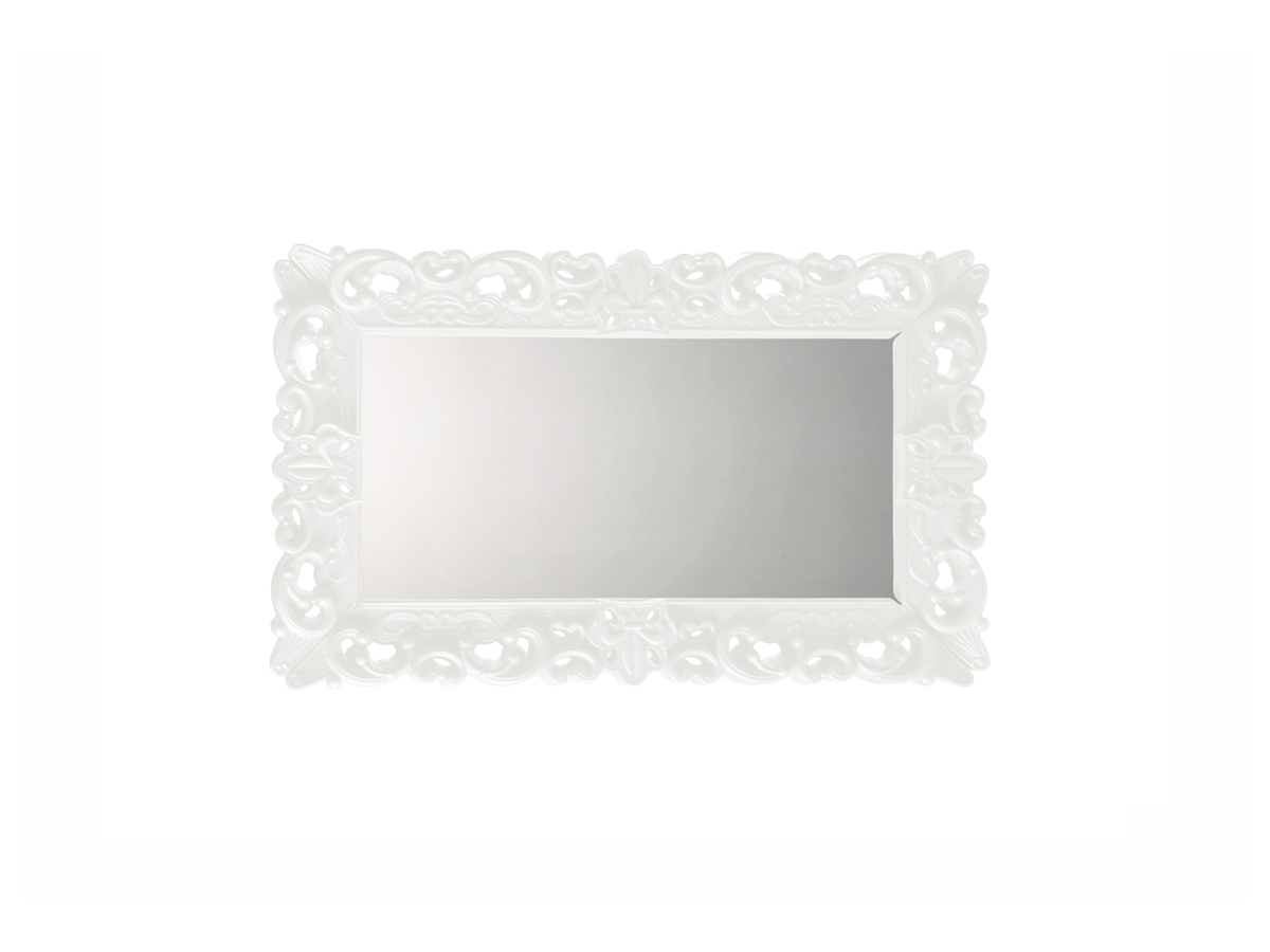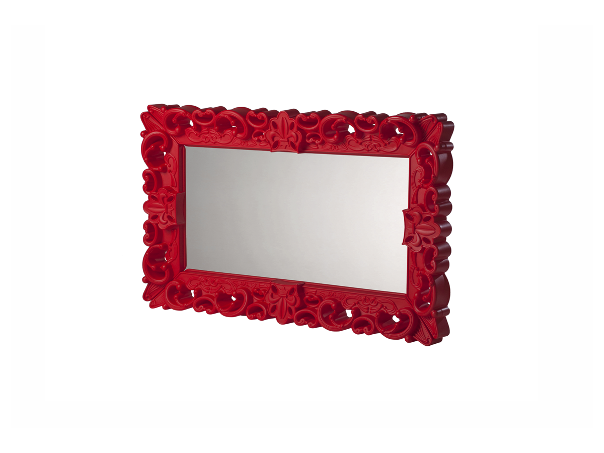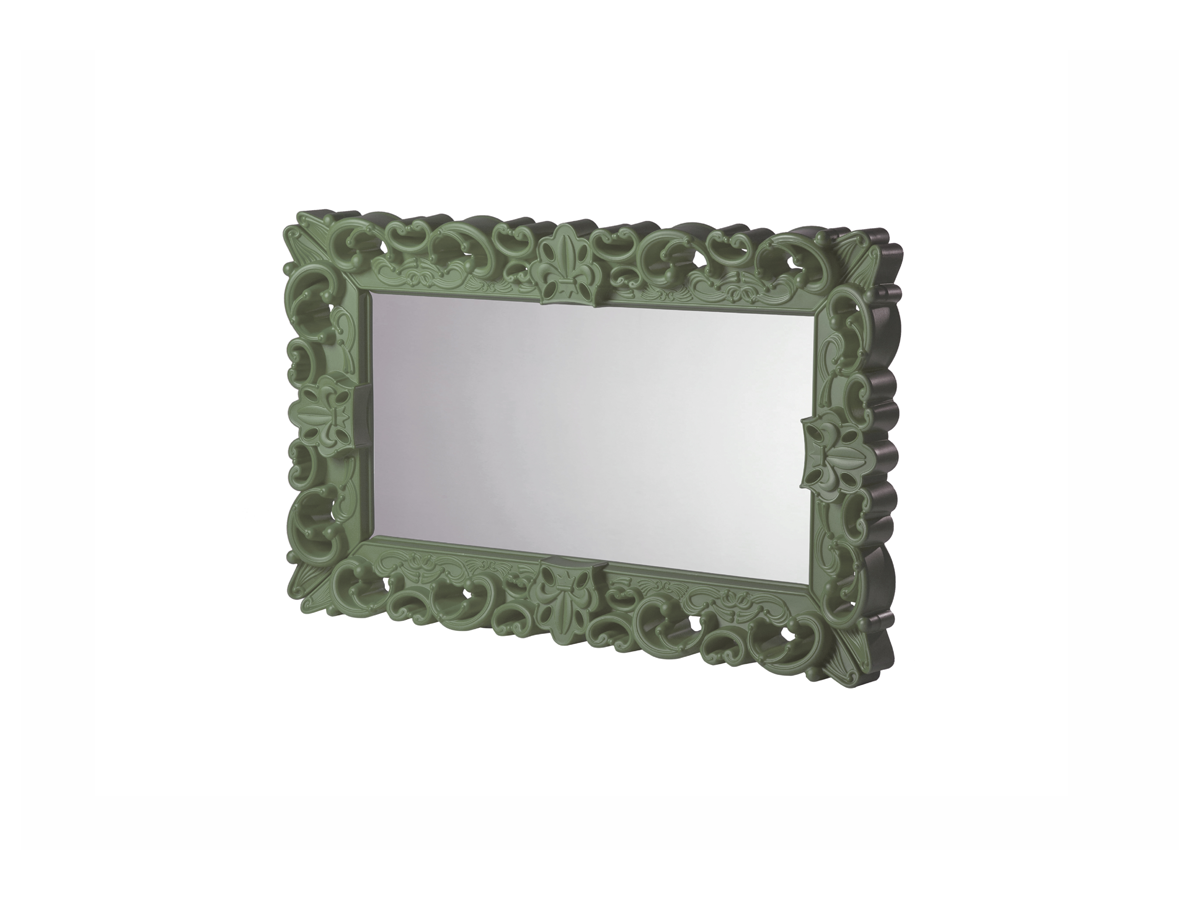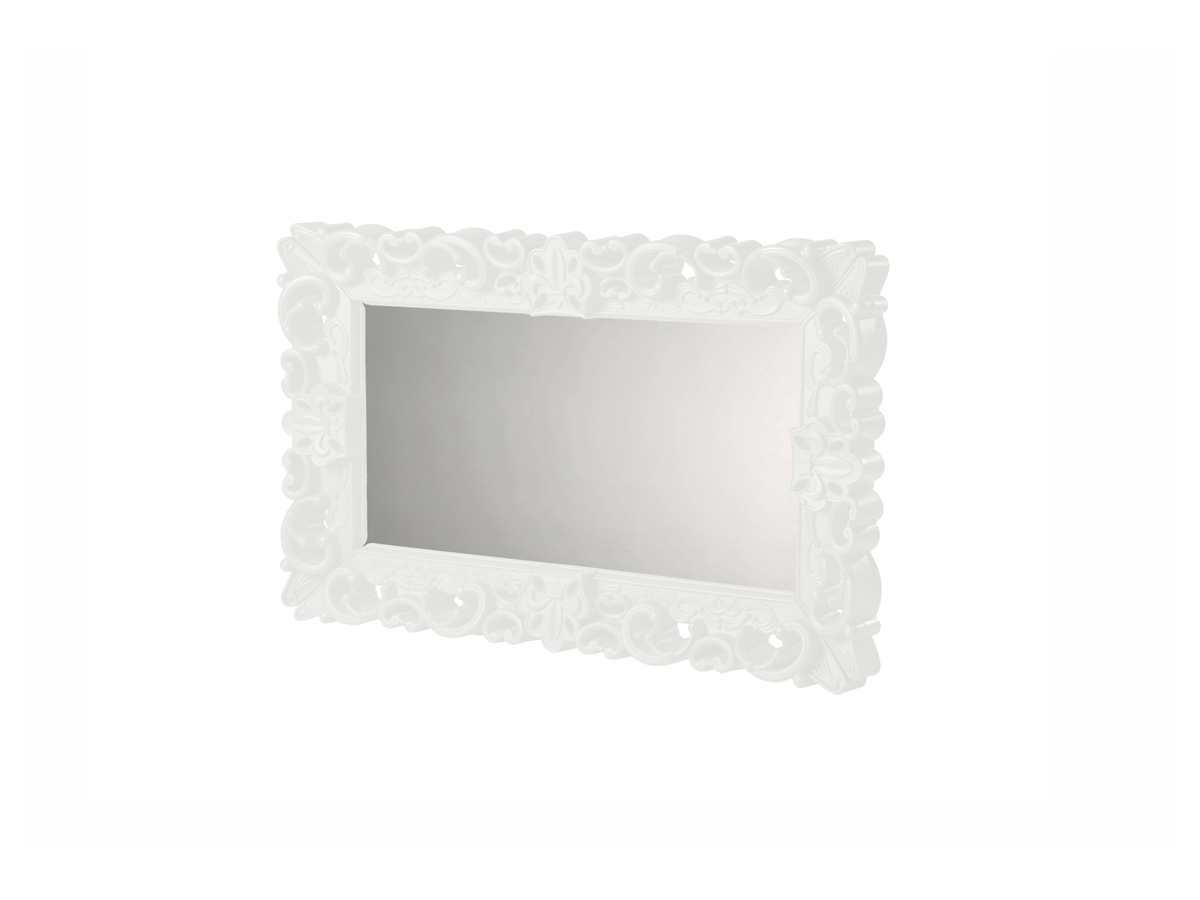 The Frame of Love - M mirror is a very unique item with its remarkable dimensions and intricate rococo-style details, which undoubtedly cannot go unnoticed. The imposing size of the sides 162 cm by 99 cm, allows the Mirror of Love, with its majesty to become the protagonist of the large volumes of halls, exhibitions, and galleries, integrating into the macro-design philosophy recently presented by SLIDE.