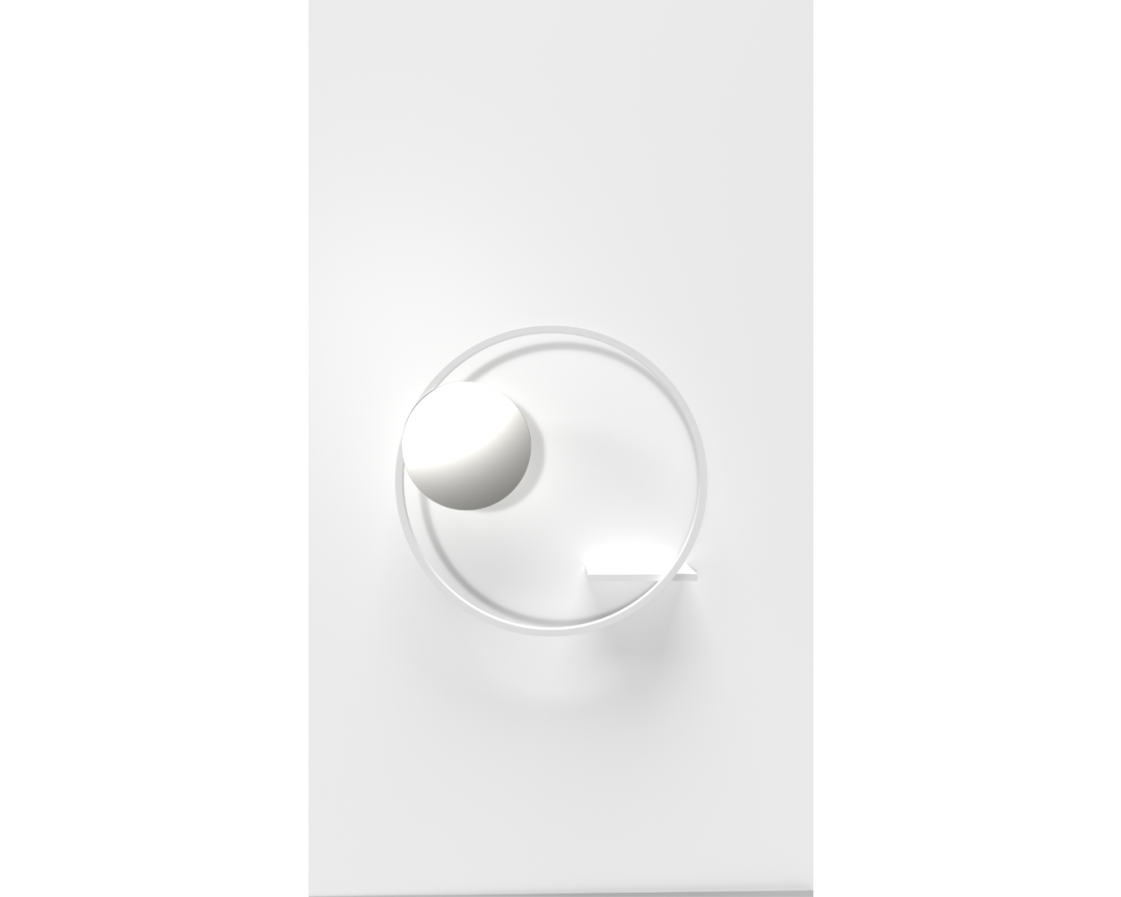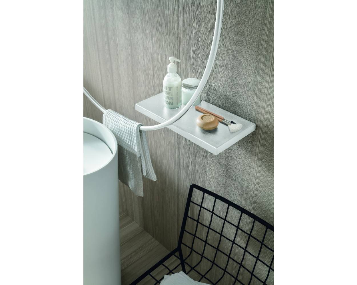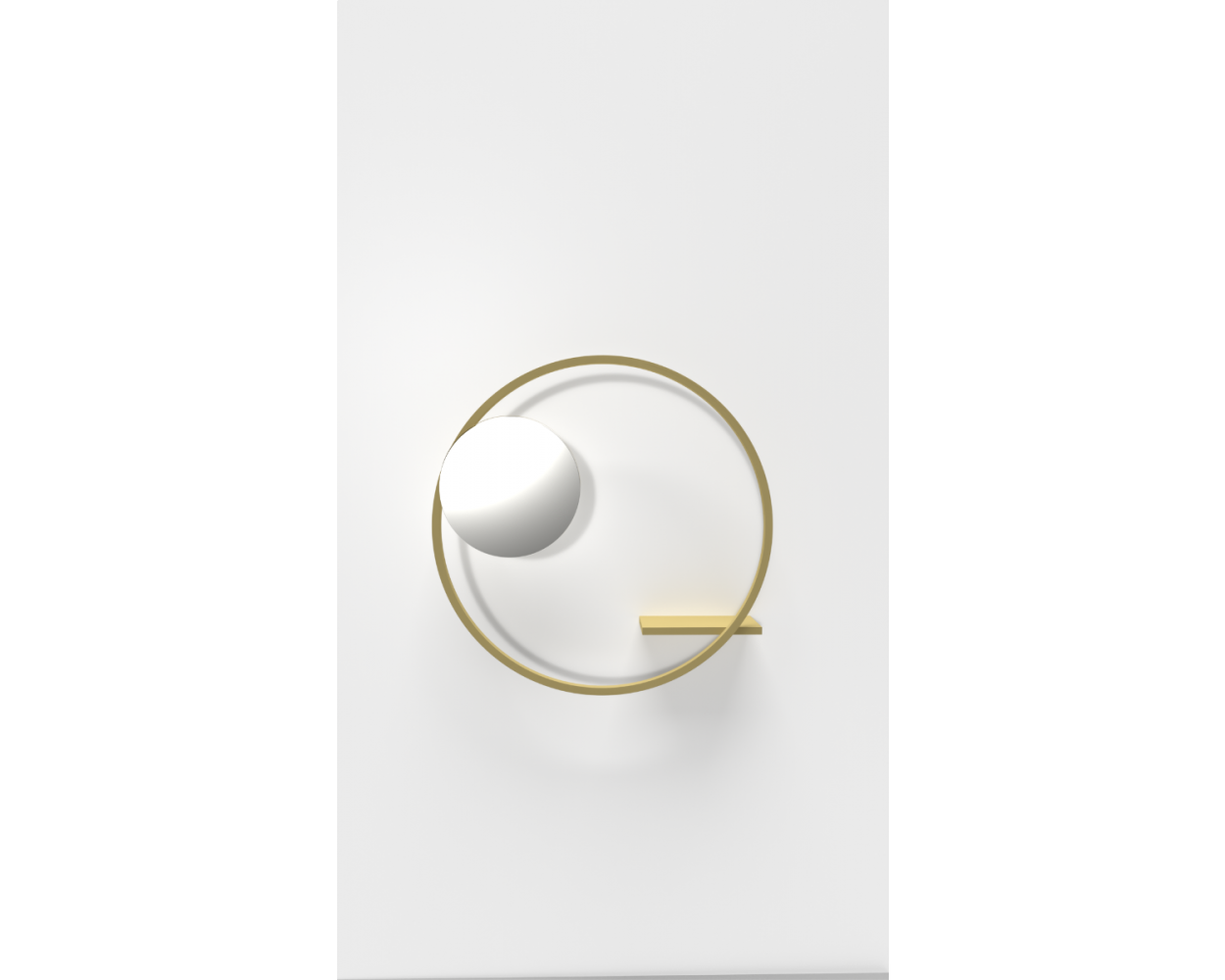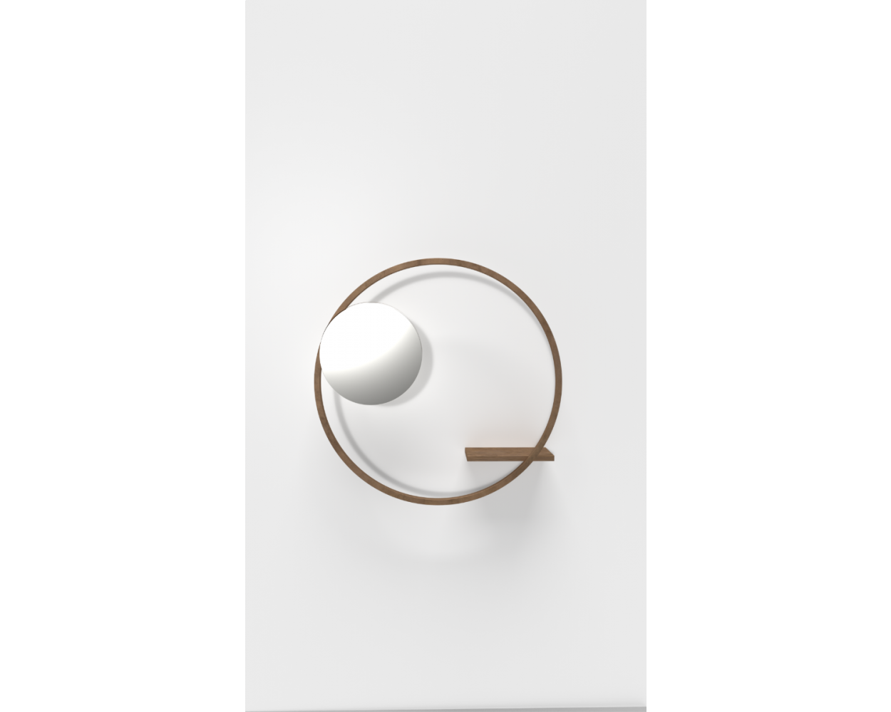 Dimensions: Ring: ø 110 cm. Shelf: 39.5 x 19.5cm. W: 21.5 cm Mirror size: ø 50 cm