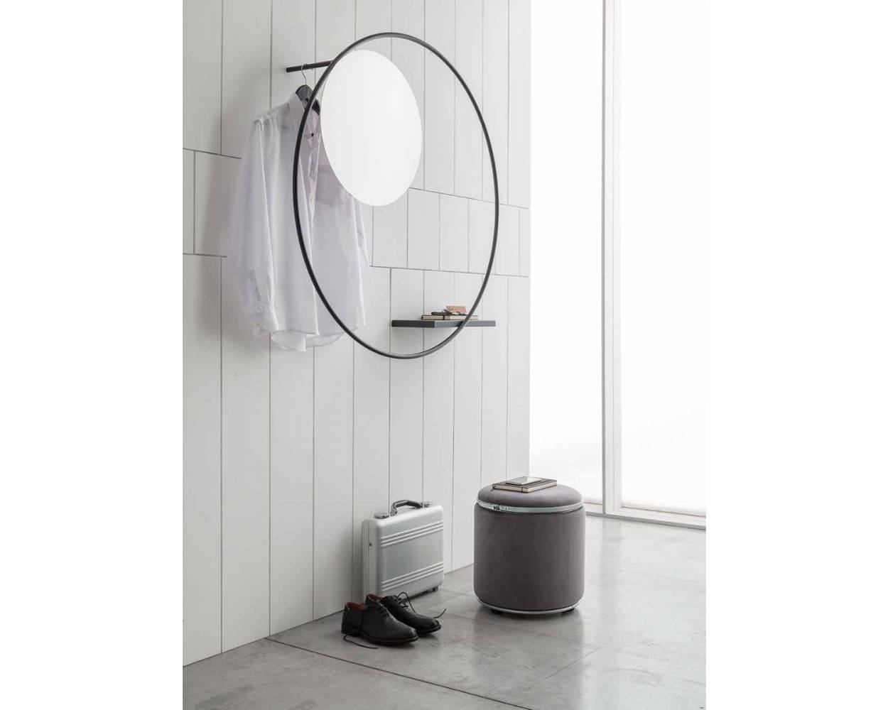 DOT is a transversal piece of furniture with an original and refined style, designed to optimize space, in just over a meter a mirror, a shelf, a coat hanger and a company light coexist.