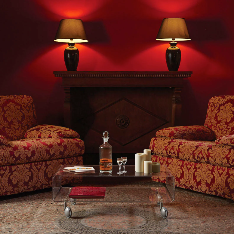 Multi-purpose trolley on wheels, in transparent methacrylate (8mm thickness).