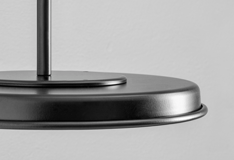 The flattened shape and essential design make these powder-coated aluminum spheres (matt white or black) suitable for modern and refined contexts.