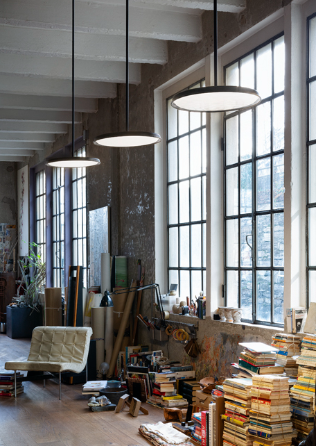 The pendant version is mounted on a rigid tube, while the ceiling version is also available with concealed accessories for installation on plasterboard surfaces.