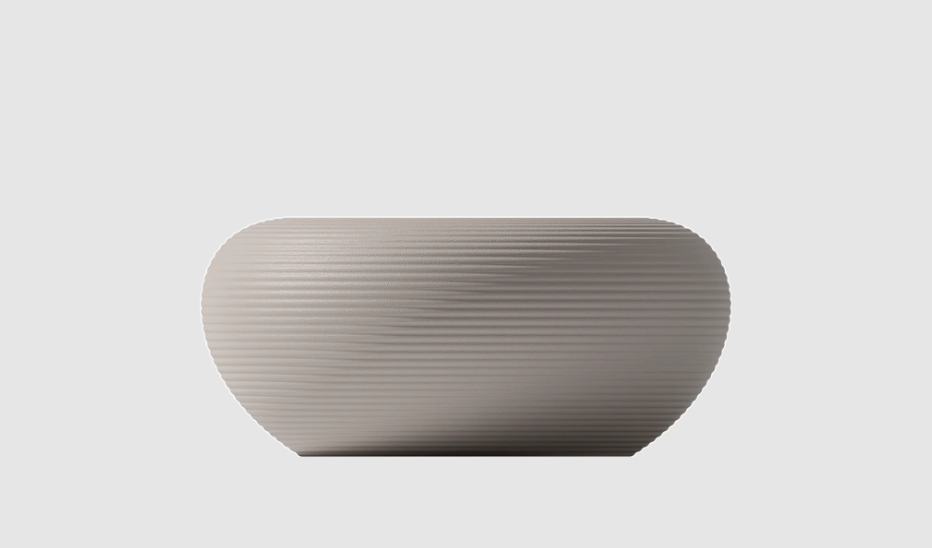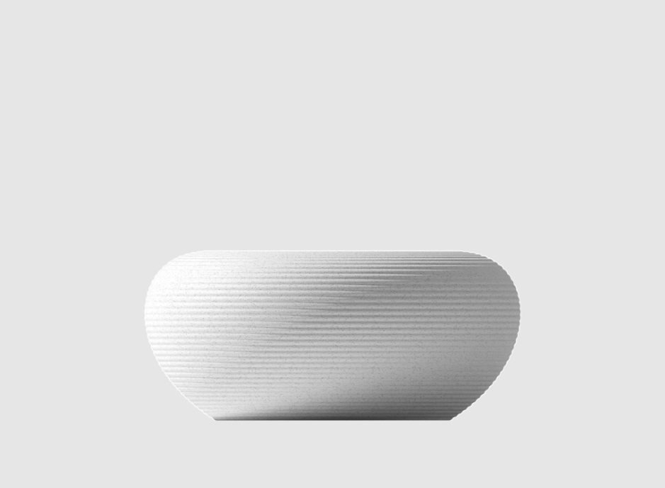 It is available in six finishes: three in solid colors and three obtained by mixing recycled materials in 2–3 different shades.