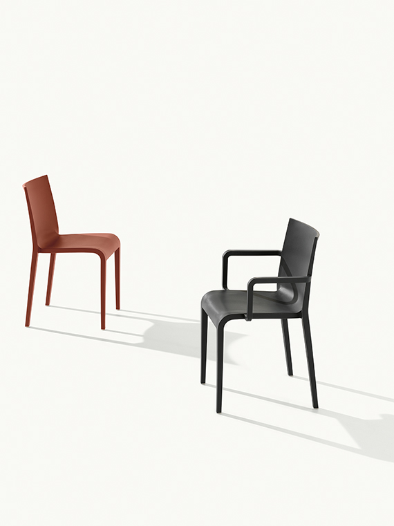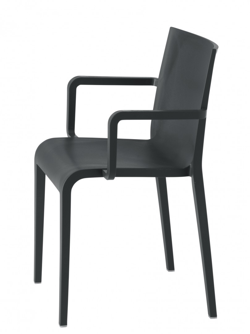 Monobloc chair with armrests in polypropylene, injection-moulded with air moulding technology.