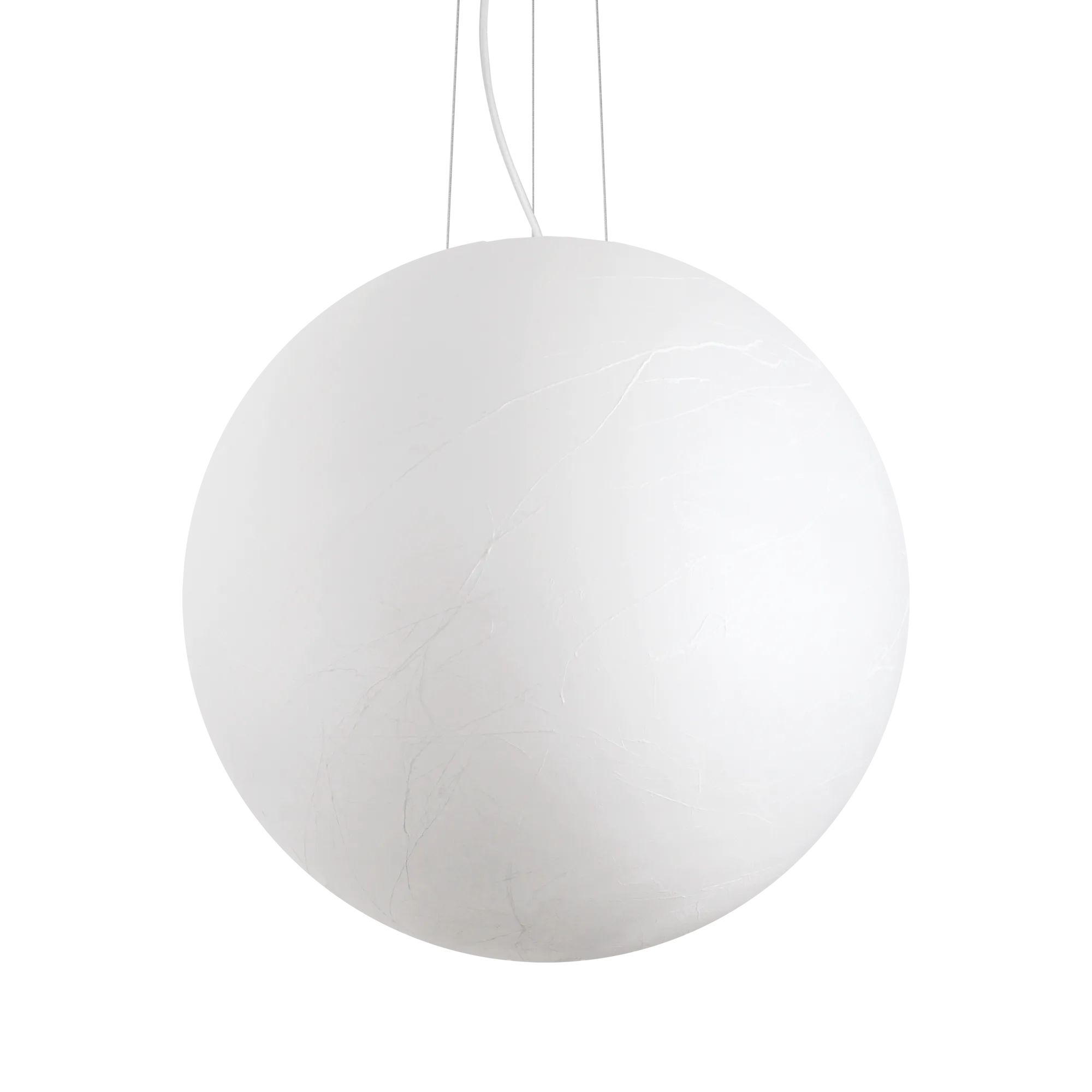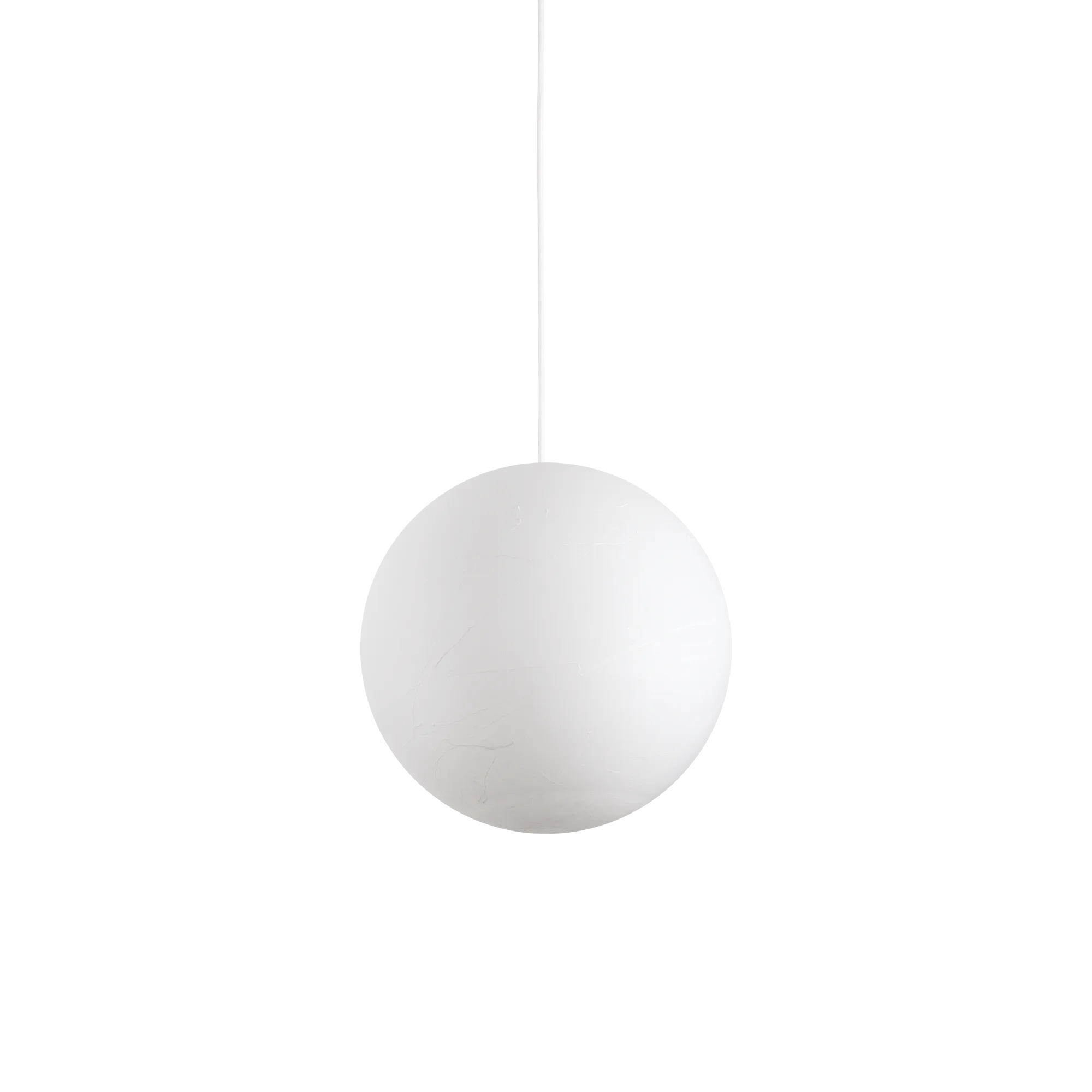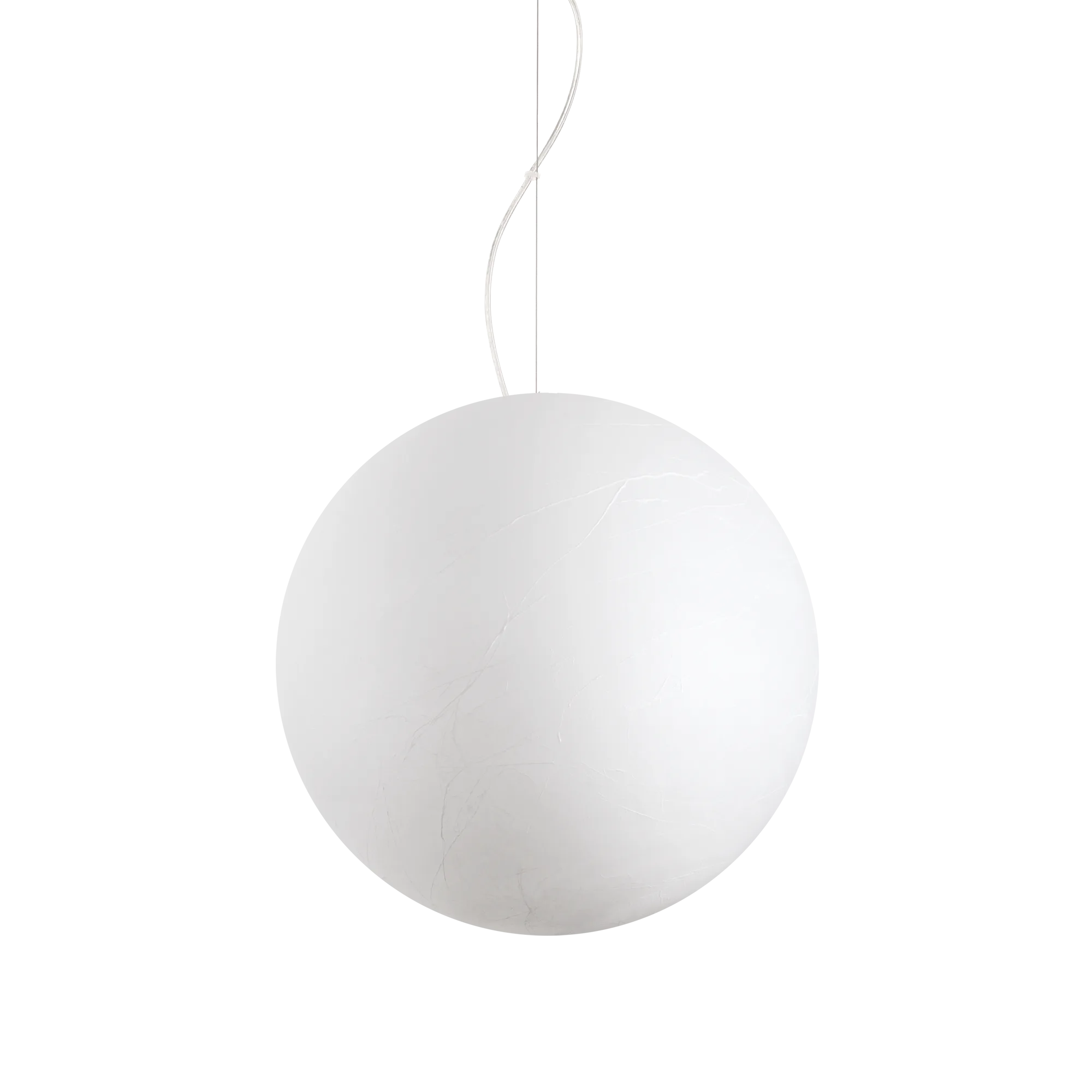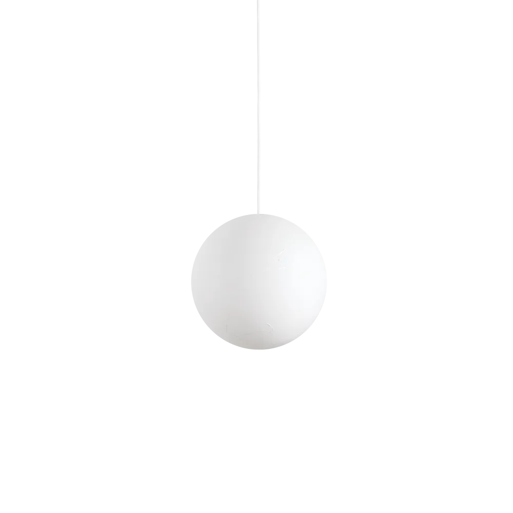 Matte white painted metal frame. Polycarbonate diffuser with paper-effect coating. Fabric-covered cable.