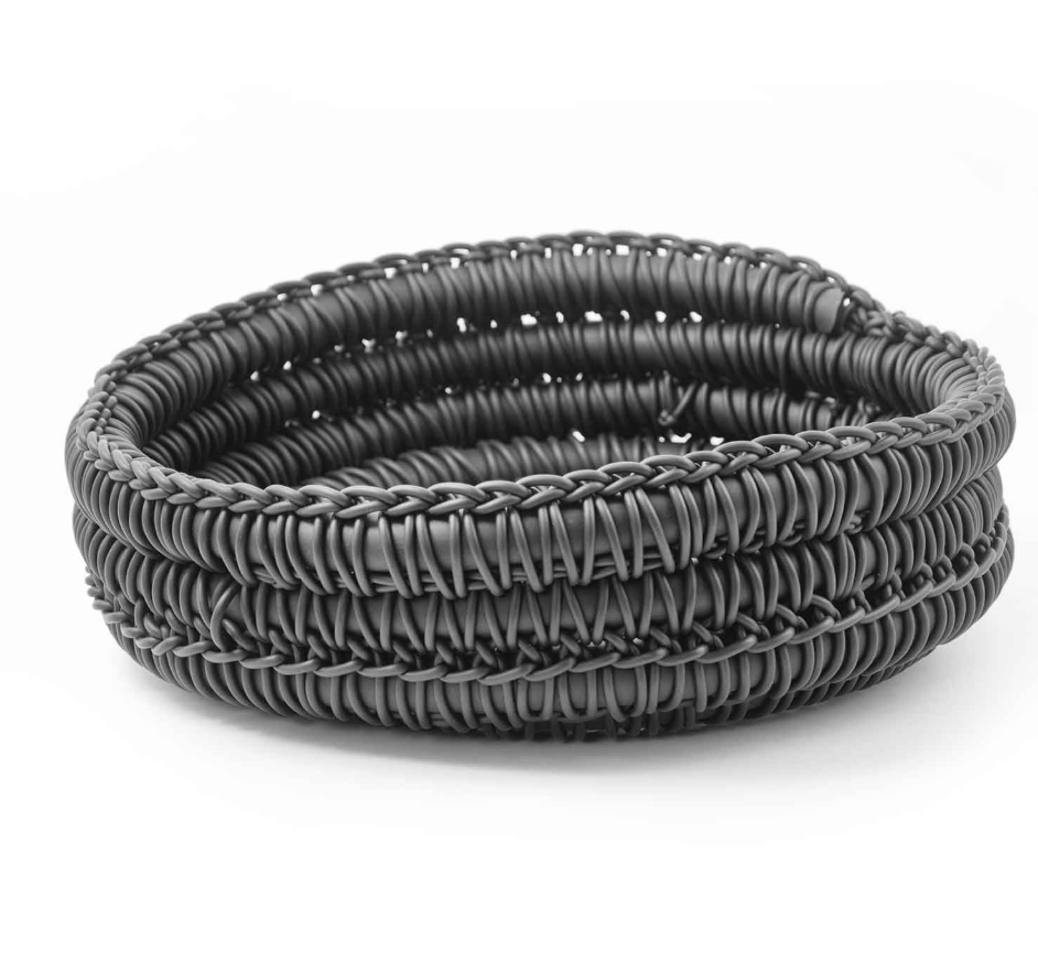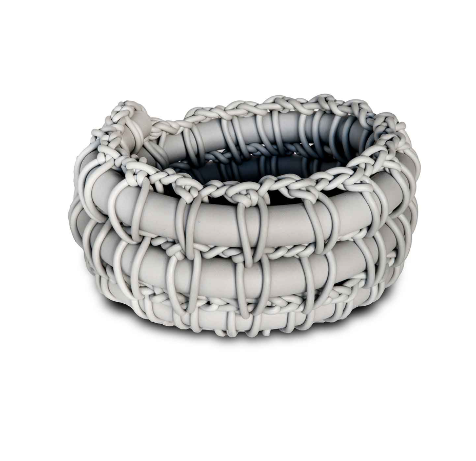 The Nest Basket is hand-knitted with double neoprene thread of different thicknesses, which gives the piece a solid but flexible structure.