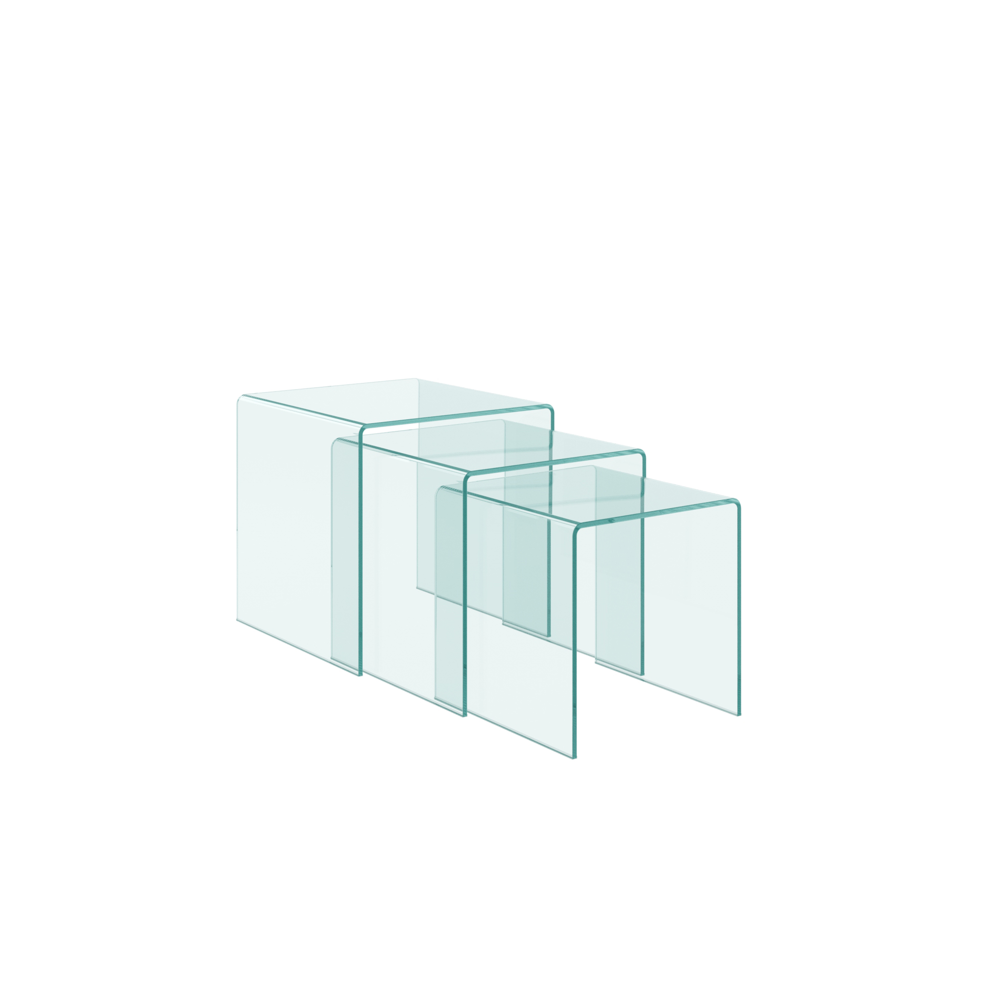 With the Nest coffee table, the beauty of glass tastefully furnishes a refined home and reflects the design traditions of ancient China. Antique coffee tables are given a modern makeover, adapting to a wide variety of decor styles. For lovers of classic style, glass is that touch of class that makes a room welcoming and elegant. Also perfect in a modern setting, the curved glass is timeless and adds a unique sheen. The Nest coffee table is the perfect solution for those who need to make the most of every corner of their home. This way, you'll have not just one coffee table, but three Nest tables that, when folded, won't take up any space. The Nest coffee table was designed to optimize space, so its shape allows it to take up little space while providing three storage surfaces. A beautiful and functional piece of furniture, perfect for a living room, bedroom, or study. Dimensions: Small table: L.34 x D.34 x H.34 Medium table: L.38 D.38 H.38 Large table: L.42 x D.42 x H.42 Glass thickness: 12mm