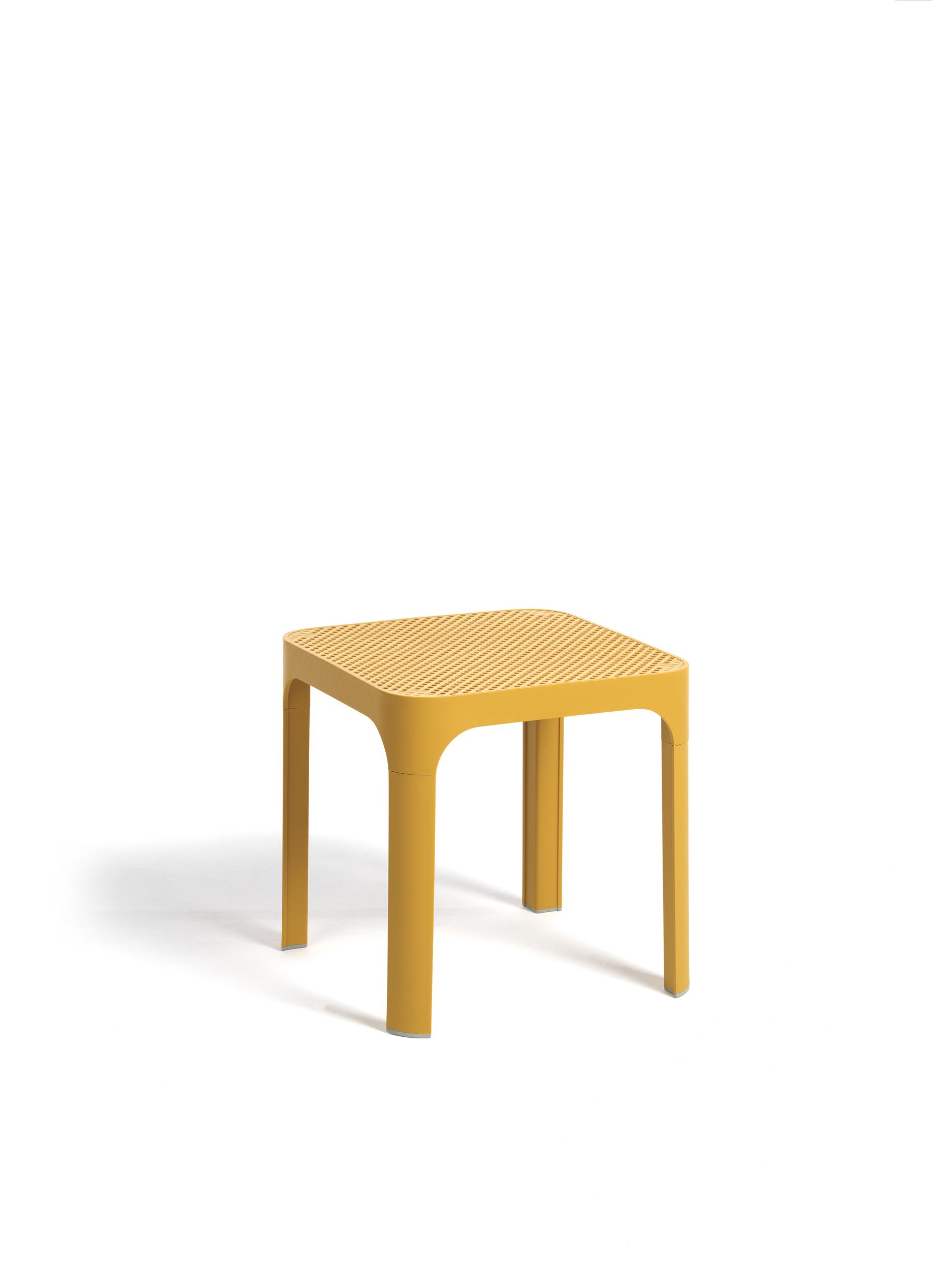 Available in a wide range of colours, the Made in Italy coffee table is stackable and features a perforated square top .