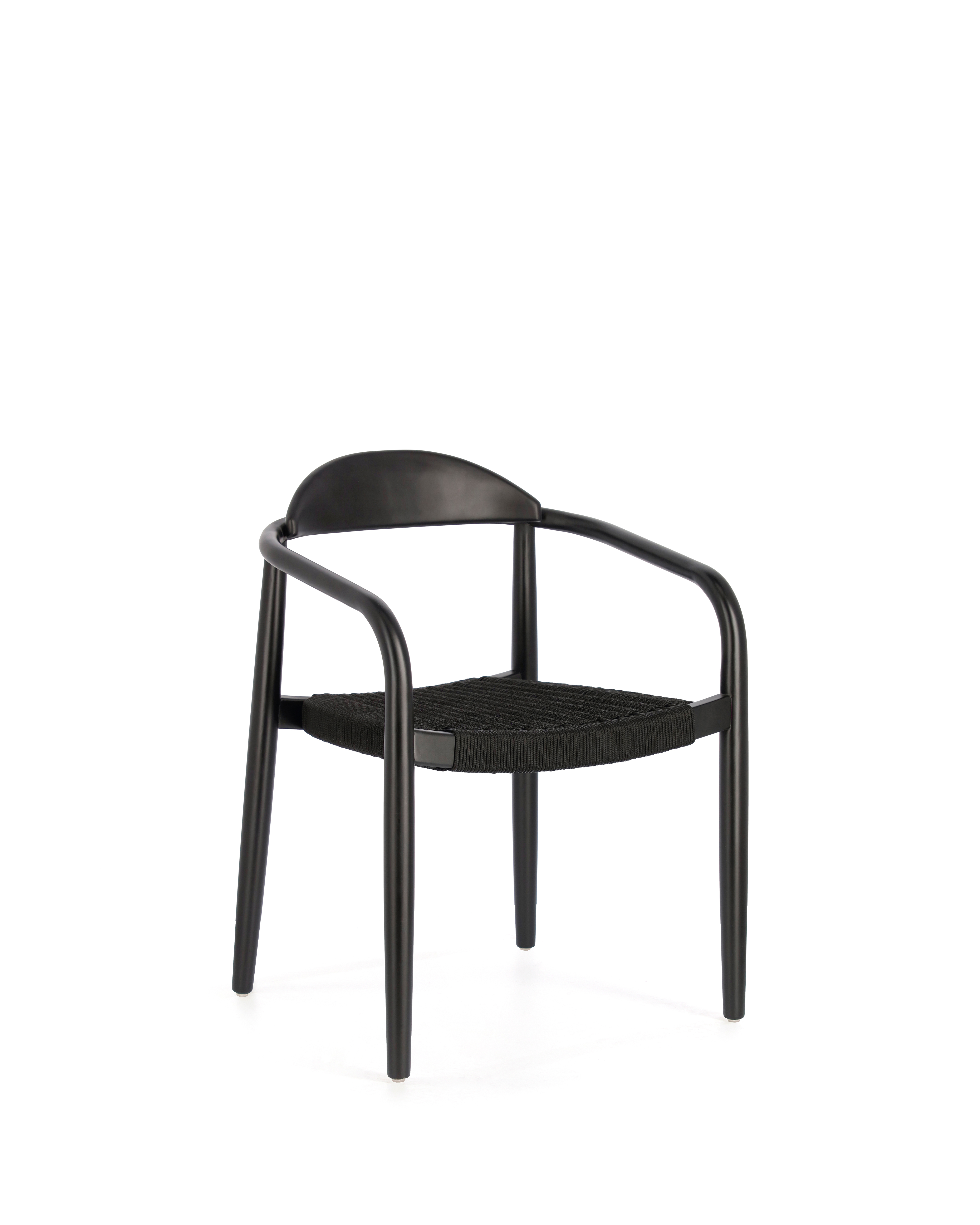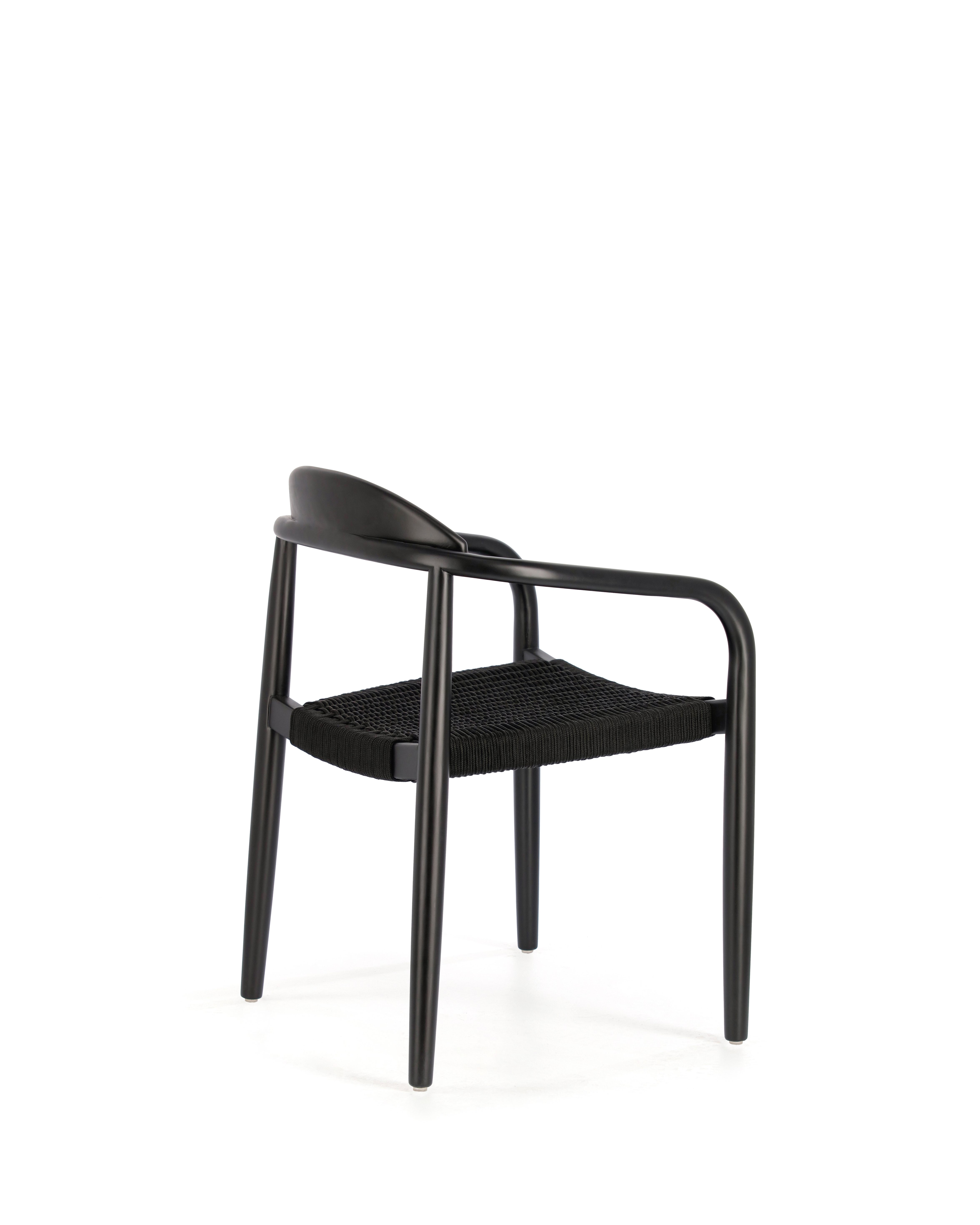 Nina chair in solid acacia wood with a matt black finish and black rope FSC 100%
