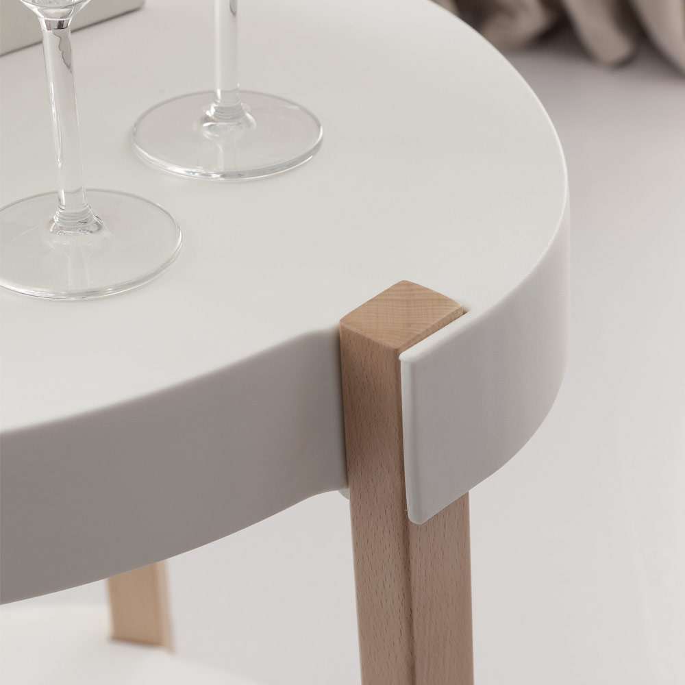 The combination of solid natural beech and white polypropylene not only gives it an elegant and modern look, but also ensures a robust and durable structure. THE
