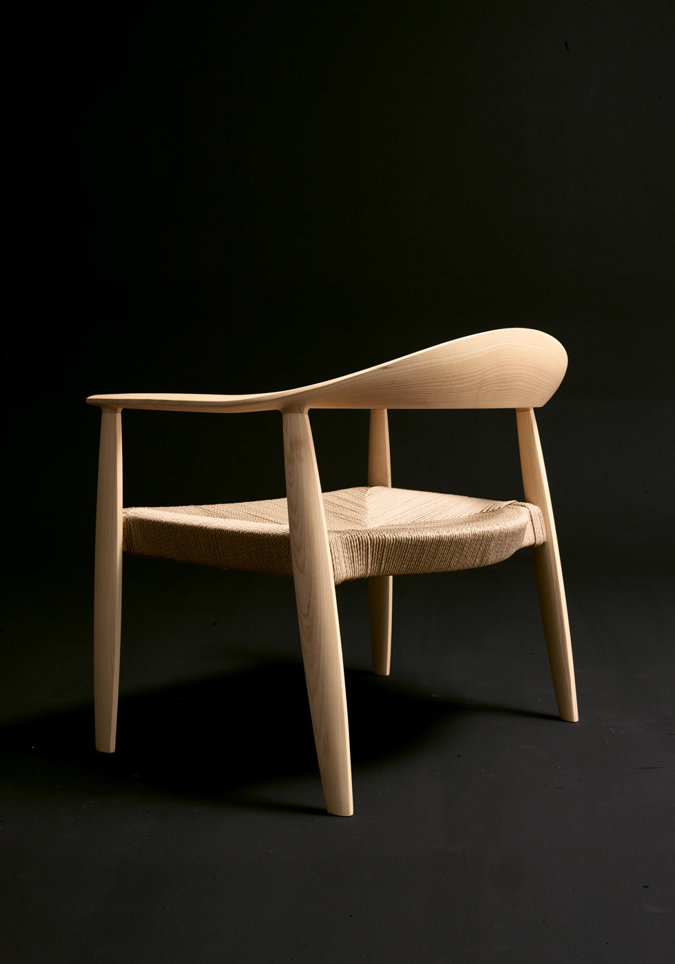 Armchair with structure in Ash wood and seat made of hand-woven straw or covered in fabric or leather.