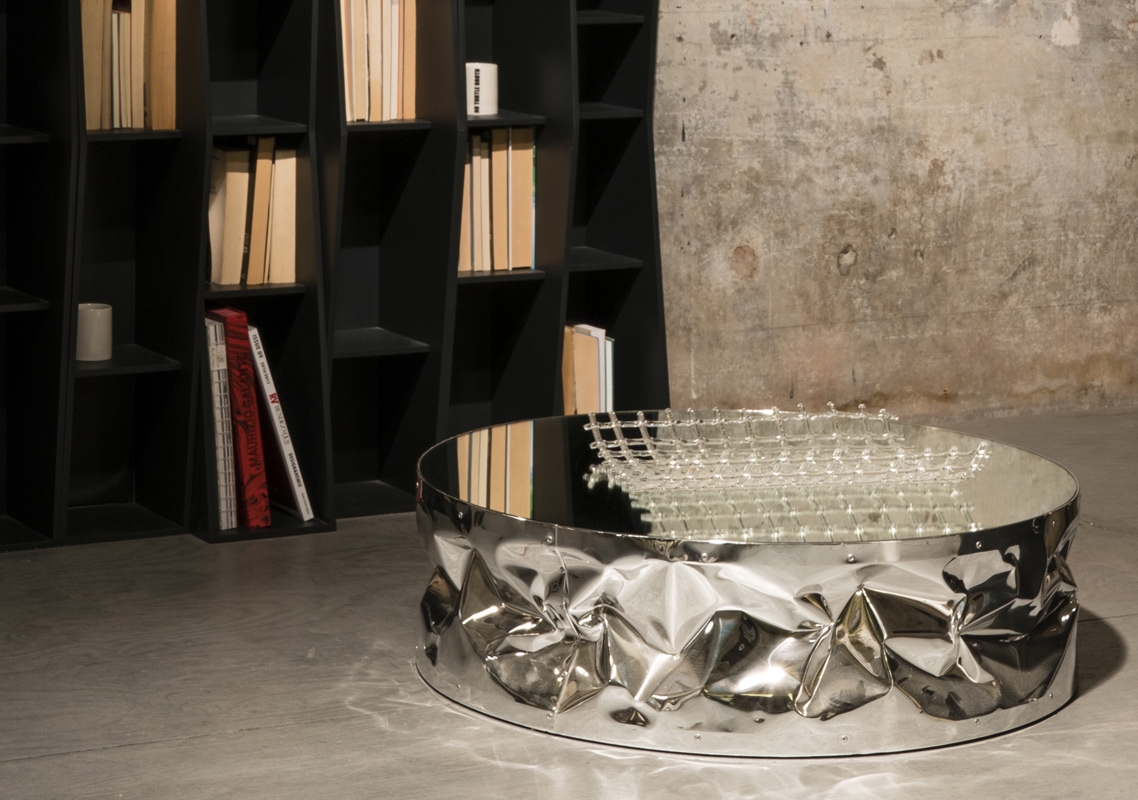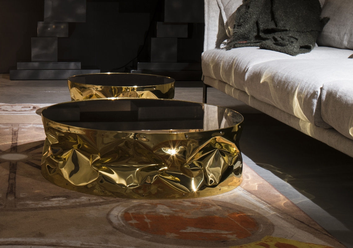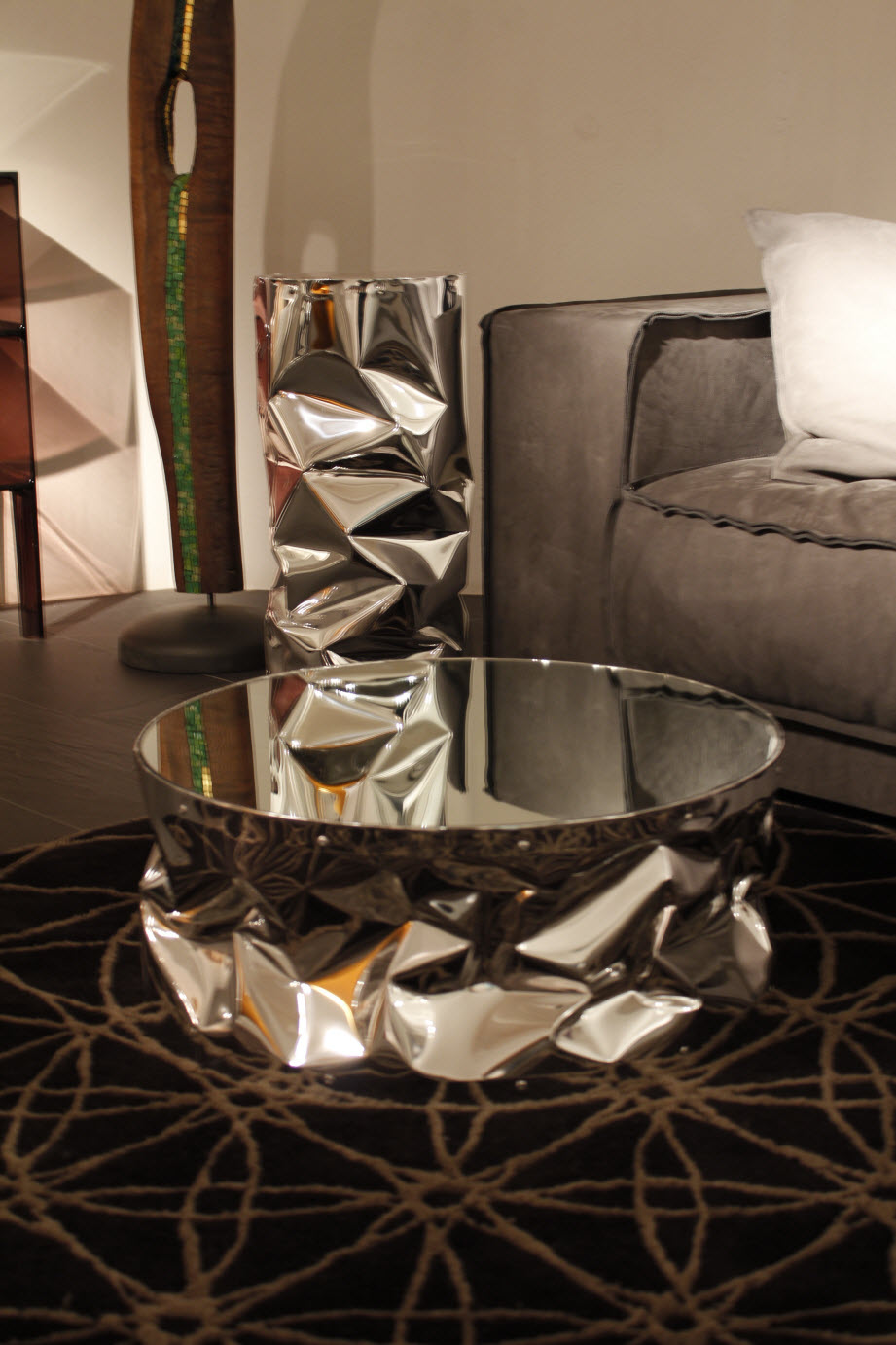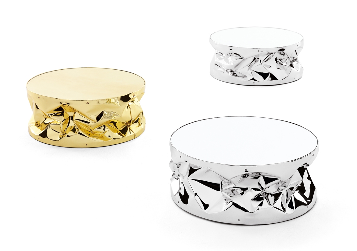 Tab.Ulone by Opinion Ciatti, is an aluminum coffee table designed by Bruno Rainaldi and is characterized by its wrinkled design, a real cool object somewhat reminiscent of a can.