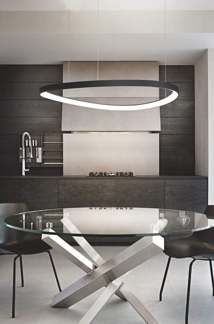 It is a pendant lamp with a contemporary design and essential lines, ideal for enhancing modern and refined environments.