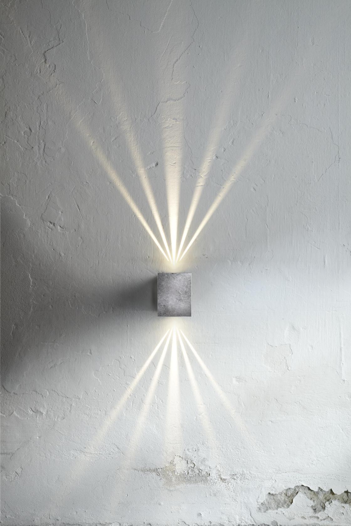 Square and metal spotlight for outdoor use with 3 diffusers for 3 different types of light.