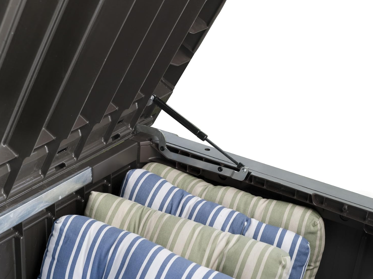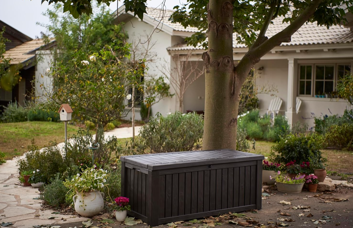 The Keter Rockwood Box tool chest is a practical and durable solution for organizing any outdoor space.