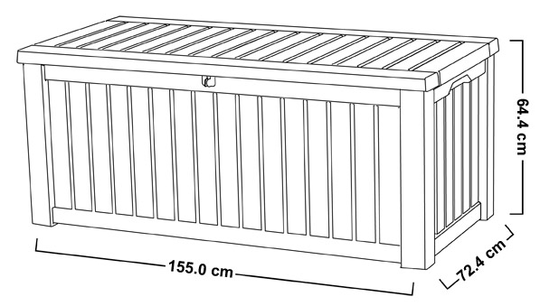 The lid is equipped with gas pistons for easy opening and can also be used as a seat for two people up to 300 kg.