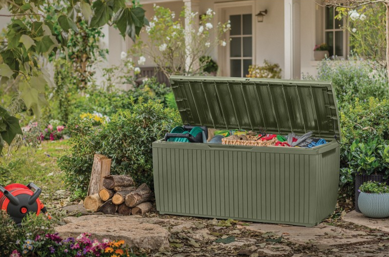 With its 305 litre capacity , it offers ample space for storing cushions, gardening accessories, games or tools.