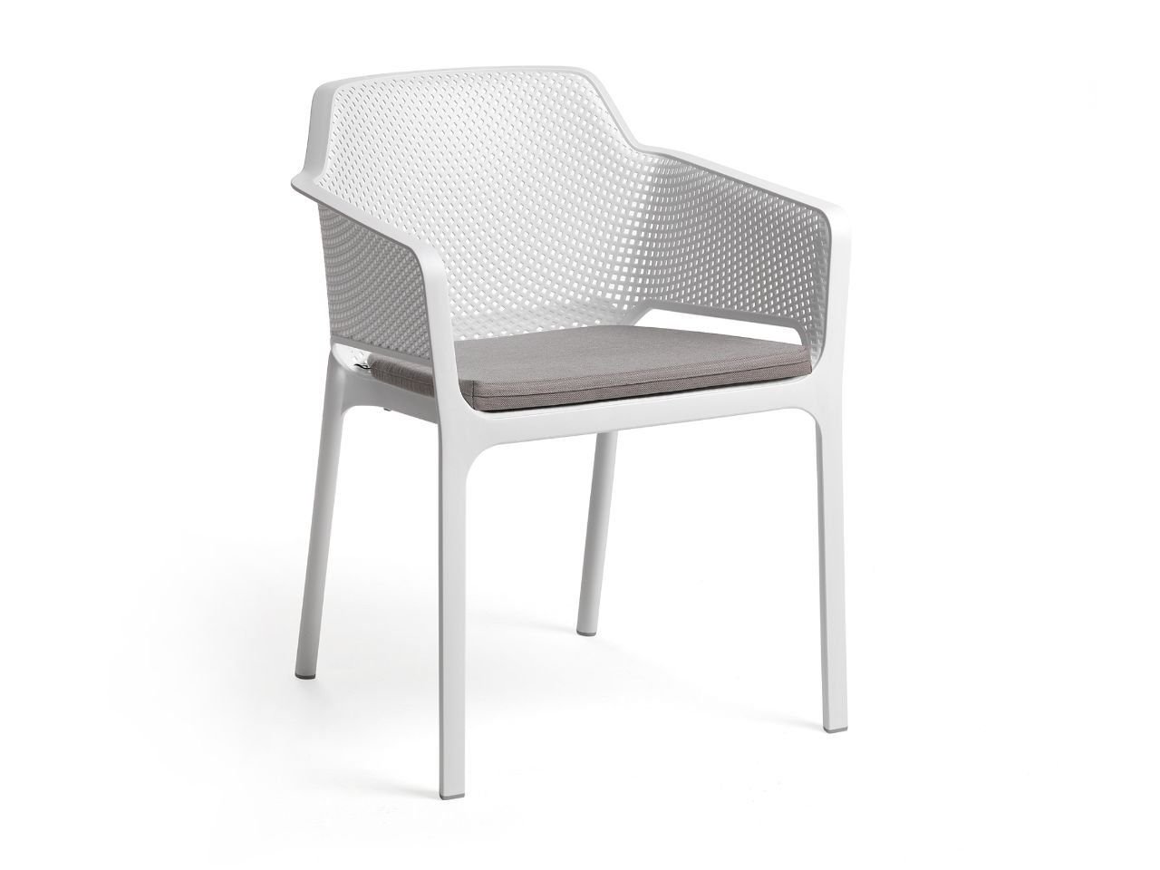 Monobloc armchair. Polypropylene fiberglass treated anti-UV and colored in the mass. Matte finish. Equipped with non-slip feet. Pillow available on order. Recyclable resin.
