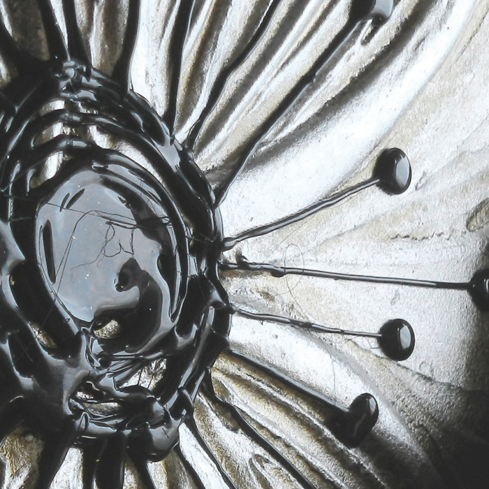 DESIGN BRUSH cm 197x67 PLATINUM variant Floral composition on canvas, decorated by hand, resin details on textured, double-elle structure with central element in relief, glossy finish