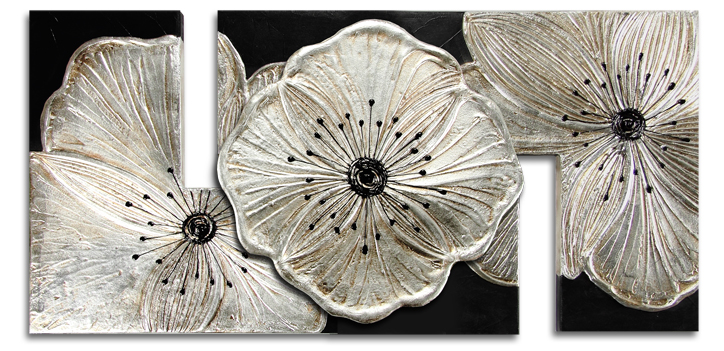 DESIGN BRUSH cm 115x55 PLATINUM variant Floral composition on canvas, hand-decorated, resin details on textured, double-elle structure with central element in relief, glossy finish.