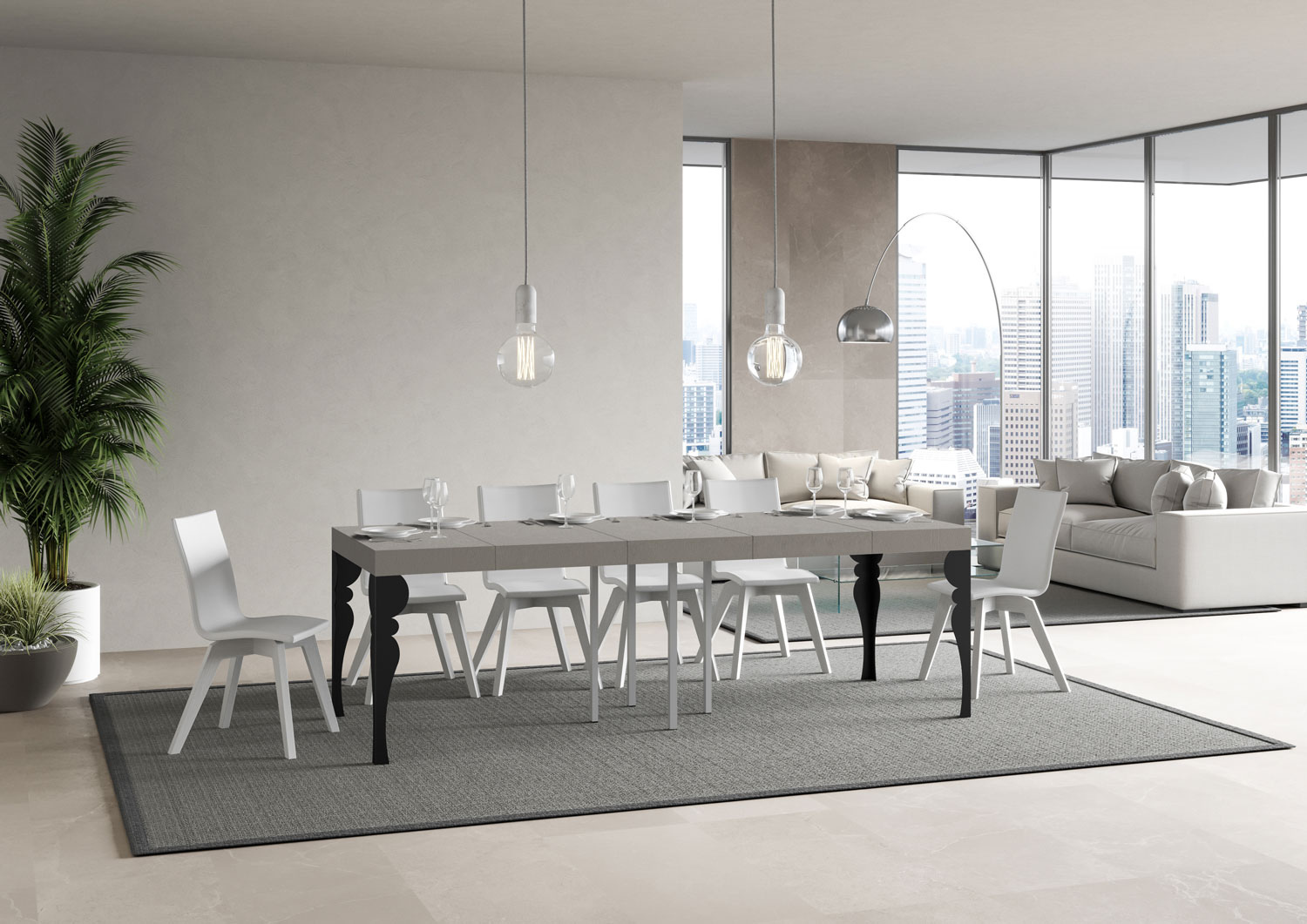 Extendable table Paxon Premium 90 modern and extravagant in design, fits perfectly in any furnishing style and it proves to be the perfect choice both as a dining table and as a design furnishing piece for the living room, where you can welcome your guests in style. The extendable table Paxon Premium can extend progressively up to 246 cm, and is able to accommodate up to 12 people. Made of melamine boards, iron legs, tabletop and extension leaves are worked in miter folding technique. The extending mechanism with aluminium telescopic rails makes the table steady and sturdy even when fully extended, without the need of external supports. When not used, the extension leaves have to be stored elsewhere. Itamoby product Made in Italy Sizes: Closed table: L.90 D.90 H.77 cm Length with 1 extension leaf: 142 cm Length with 2 extension leaves: 194 cm Length with 3 extension leaves: 246 cm
