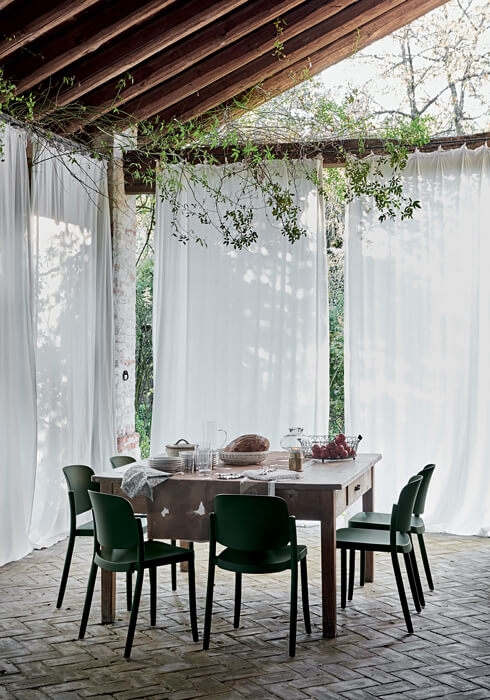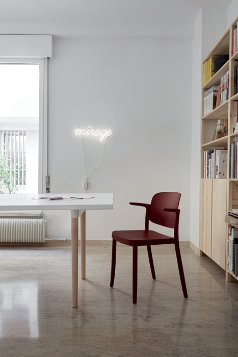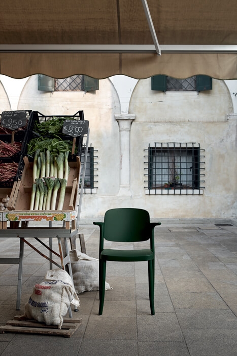 PIAZZA 1 delicately combines traditional shapes with current materials. The subtle interpretation of the classic lines that identifies it, combined with its comfort, allows us to see it usable in an almost infinite range of applications: from the house to the canteen, from the cafe to the restaurant, from the library to the meeting room, there is no limit to the idea of using this seat.
