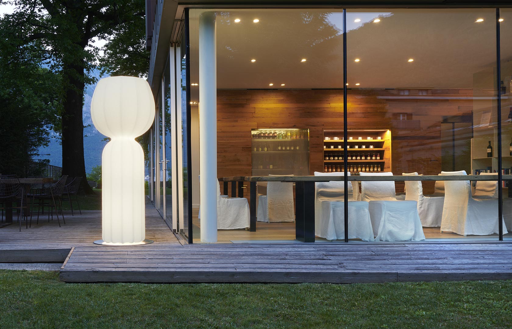 Cucun is a large floor lamp inspired by the simple and natural shapes of flowers, vegetables and bulbs, which won the GOOD DESIGN award in 2018. The particular structure in rotational polyethylene recalls, in the surface texture and ribbing, a resin coating that takes up the themes of some icons of Italian design in the Sixties, creating soft lighting effects. Ideal for decorating gardens and outdoor spaces, it is also perfect for interiors, thanks to its strong decorative presence.