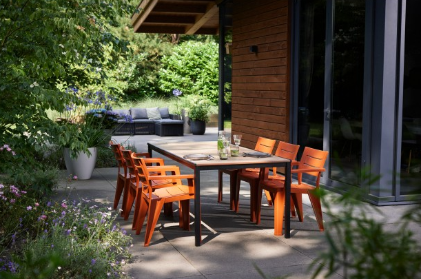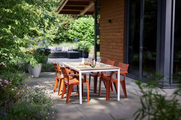 The table is sturdy, stable, and can seat up to 6 people, making it ideal for medium-sized outdoor spaces such as gardens, terraces, and verandas.