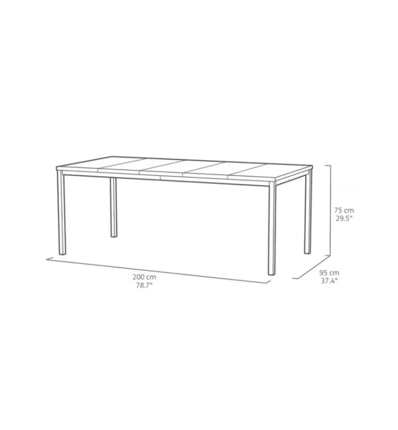 The dimensions of 200 x 95 x 75 cm make it suitable for up to 6-8 people, perfect for medium-sized verandas, gardens and terraces.
