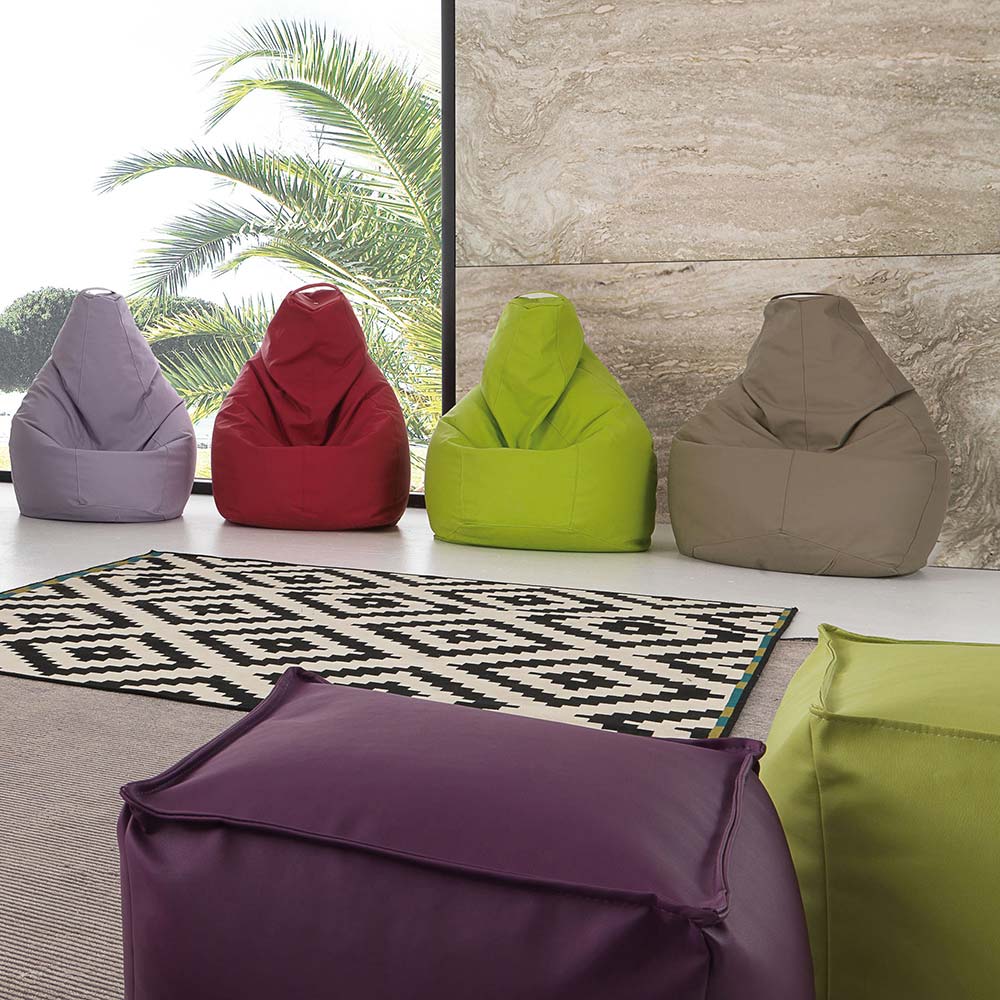 These poufs, covered in removable eco-leather and available in different colours, are ideal for enriching furnishings with a touch of color and style.
