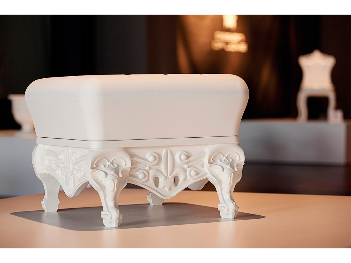 The Little Prince of Love is the perfect pouf complementing the Queen of Love seat, which is part of the original Design of Love Collection product line and characterized by rococo-style details and finishes. Thanks to its modular structure of the seat and legs, there is the possibility to choose the combination of colors, leaving more room for creativity for a unique furniture.
