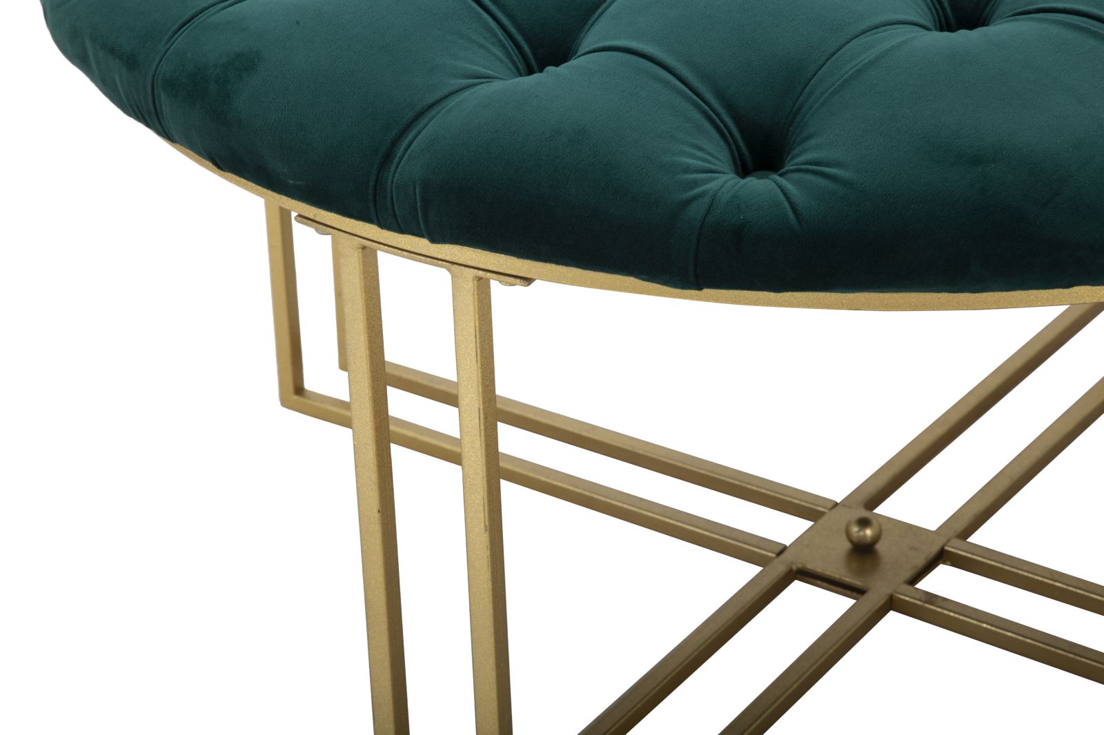 Pouf with golden metal structure and seat in padded and quilted synthetic velvet. The simple and linear design gives a touch of class to any environment.