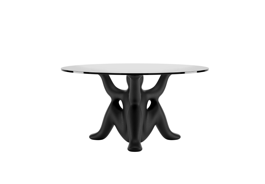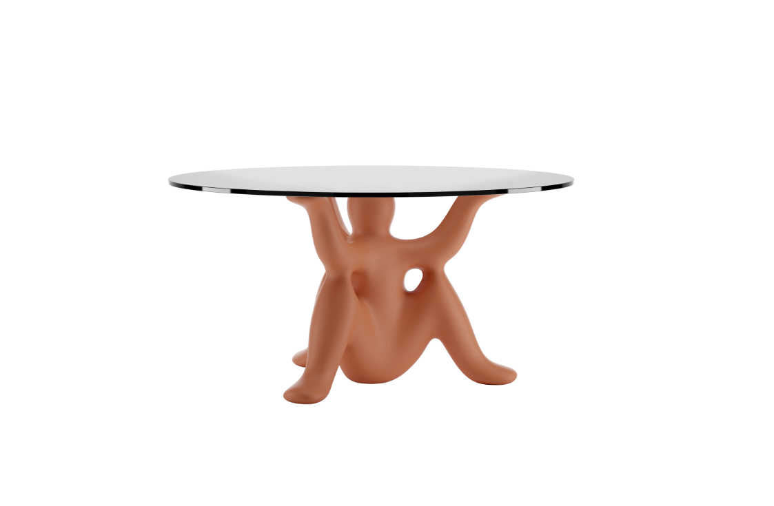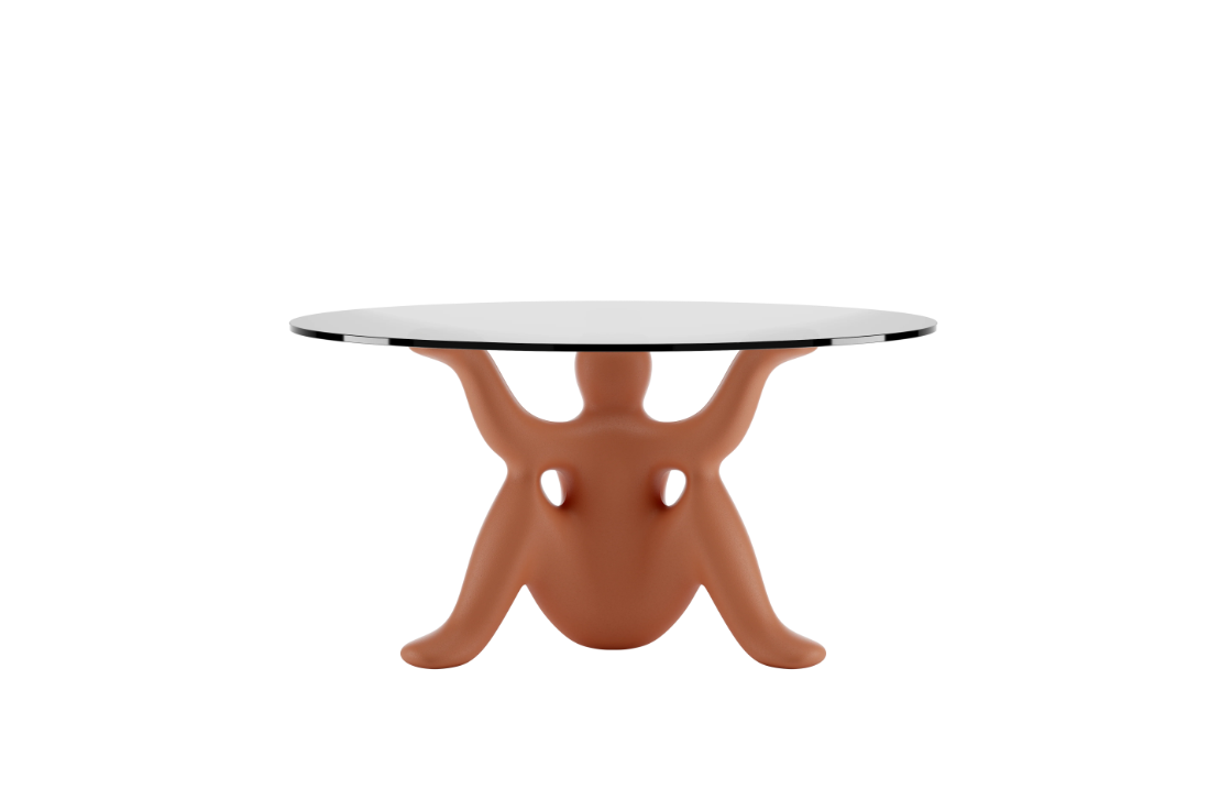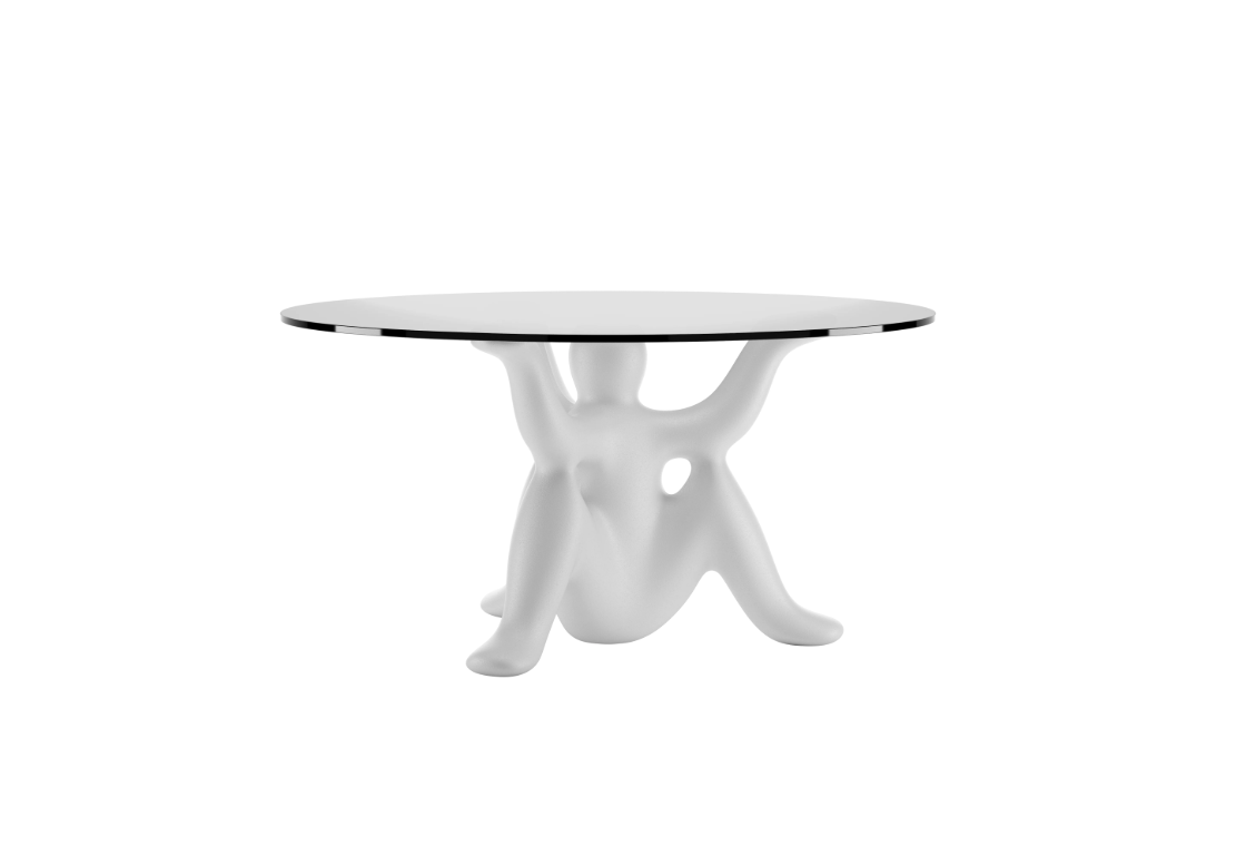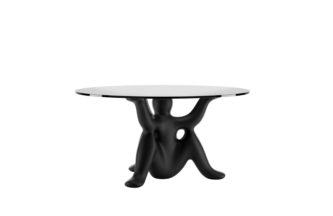 HelpYourSelf is the collection of tables designed by Philippe Starck for Qeeboo, where fantastic geniuses support a large glass top with irony and strength.