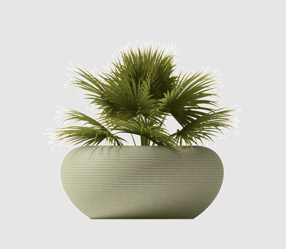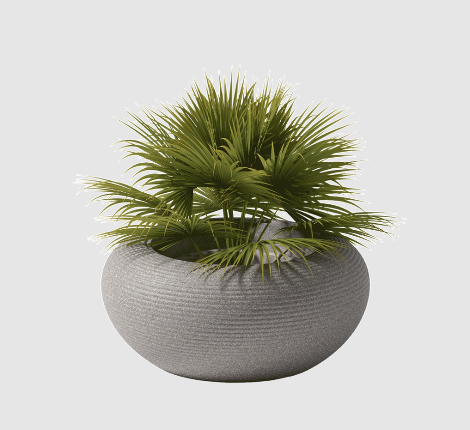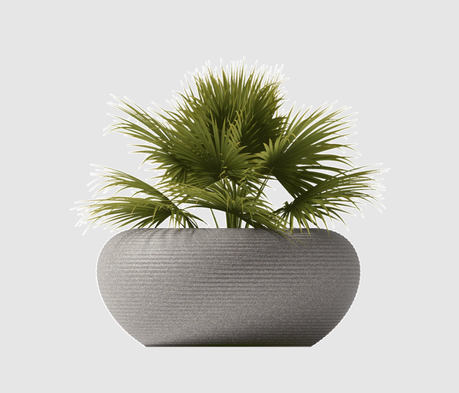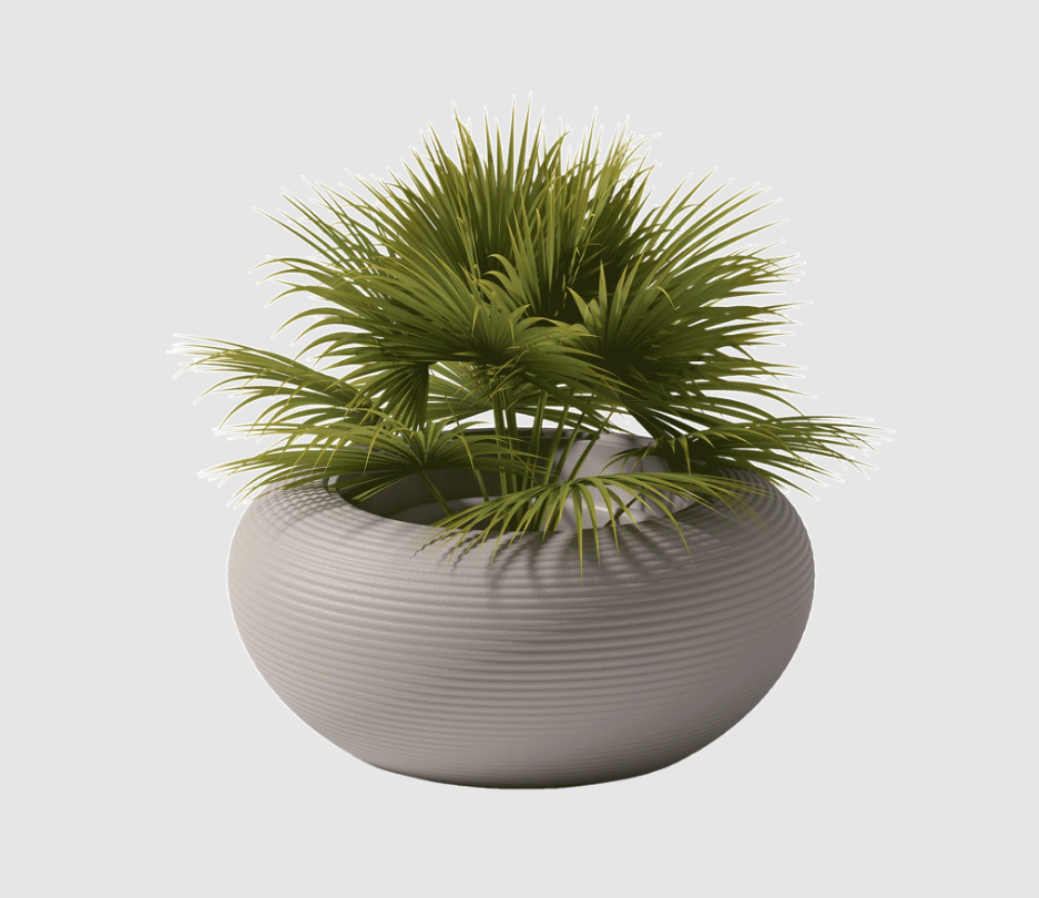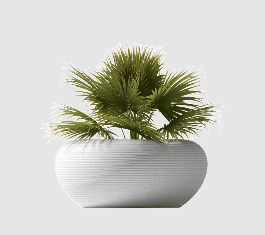 At the center of the volume there is a hole designed to accommodate plants or flowers, making it perfect for outdoor or indoor environments.