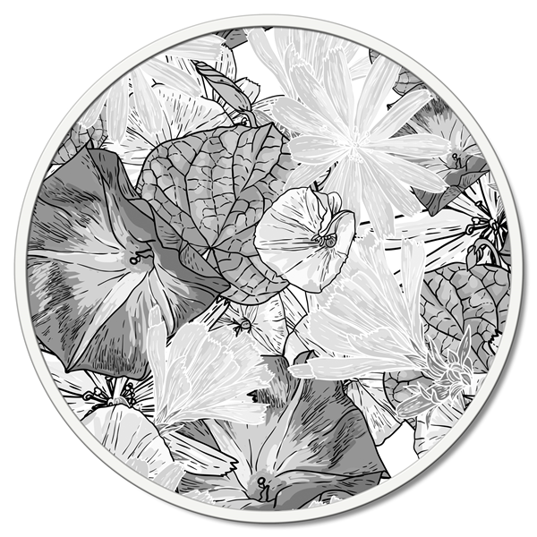 Round wood fiber panel covered in pure cotton canvas printed in high definition and with matt lacquered metal frame.