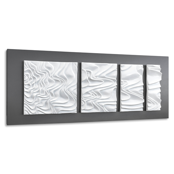 Installation in hand-decorated bas-relief, made up of four composite ceramic elements, Ivory White color, mounted on a quartz gray lacquered canvas frame.