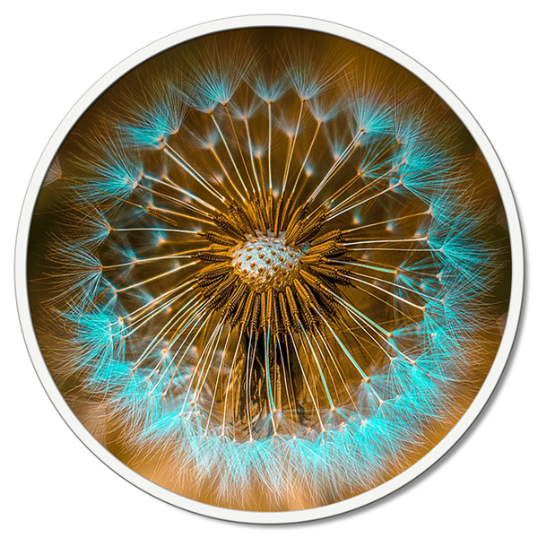 Round wood fiber panel covered in pure cotton canvas printed in high definition and with matt lacquered metal frame.