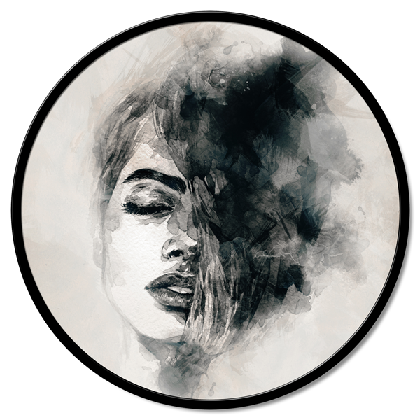 Round wood fiber panel covered in pure cotton canvas printed in high definition and with matt lacquered metal frame.