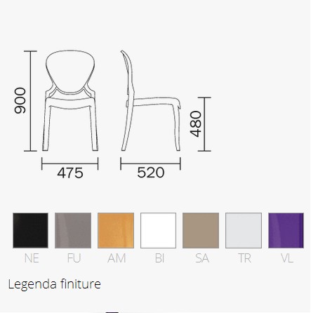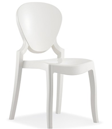 Stackable chair entirely made of polycarbonate. Queen is inspired by traditional formal canons by introducing contemporary elements in design, material and construction technology. Available in different colors, both full color and transparent.