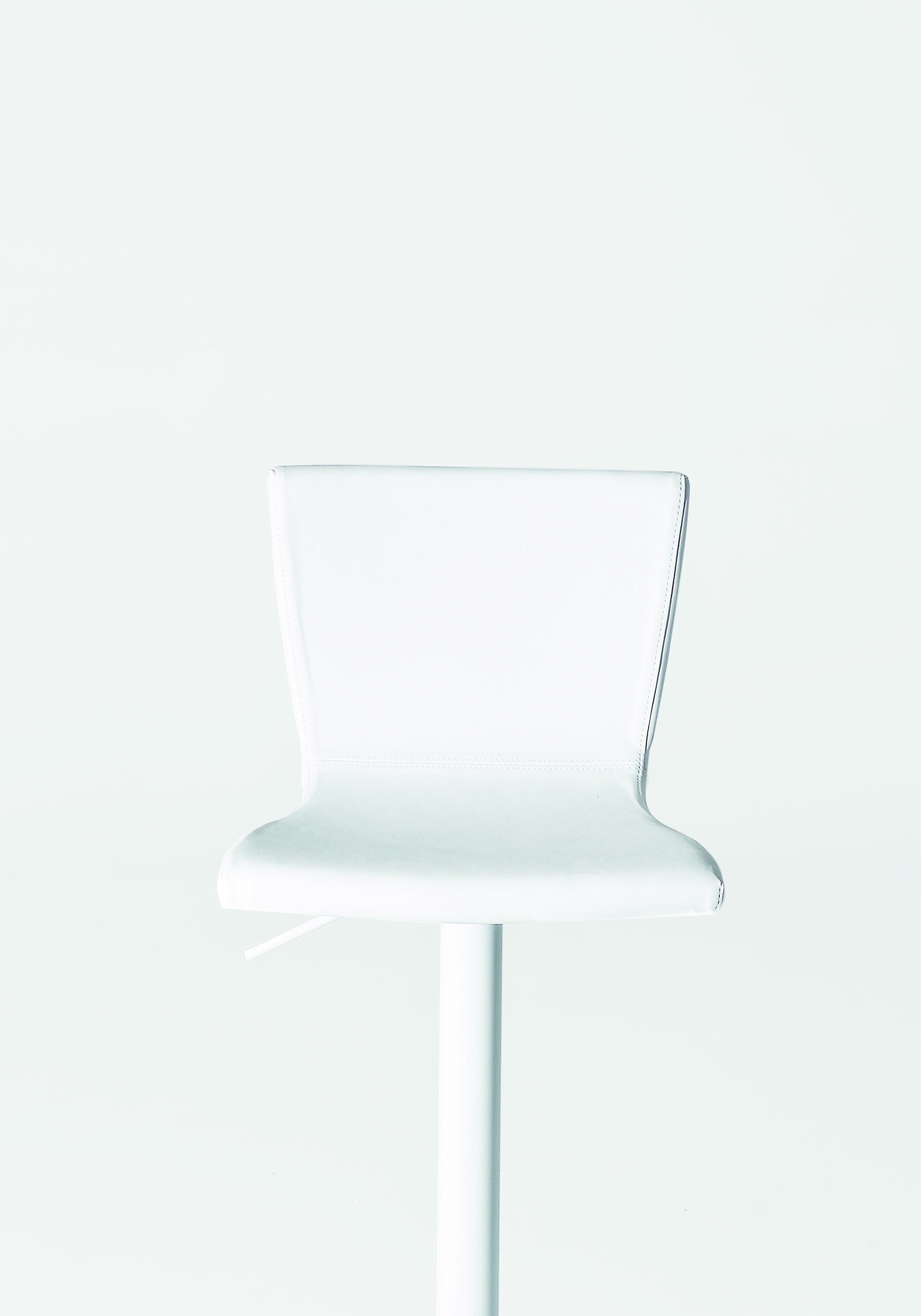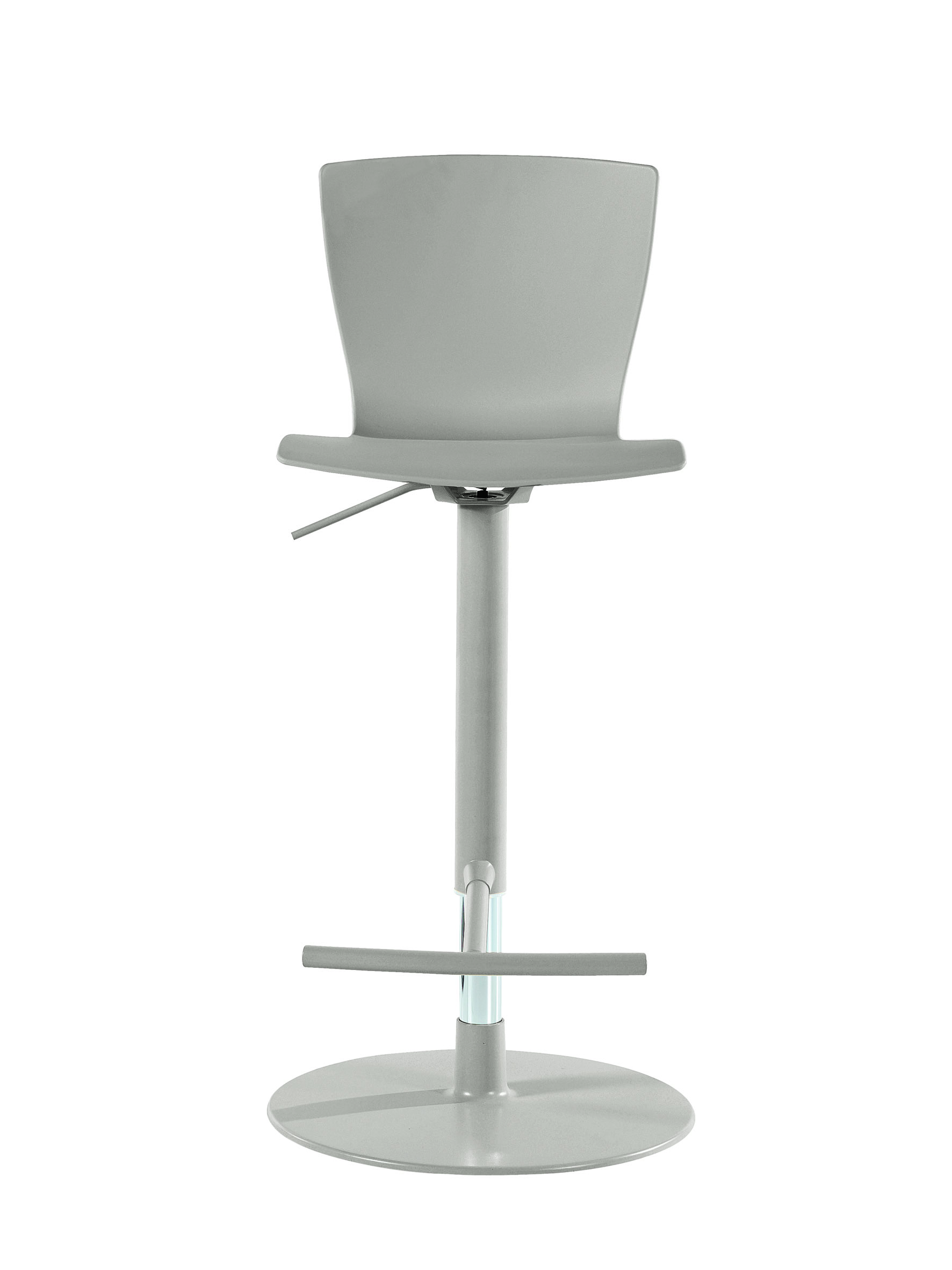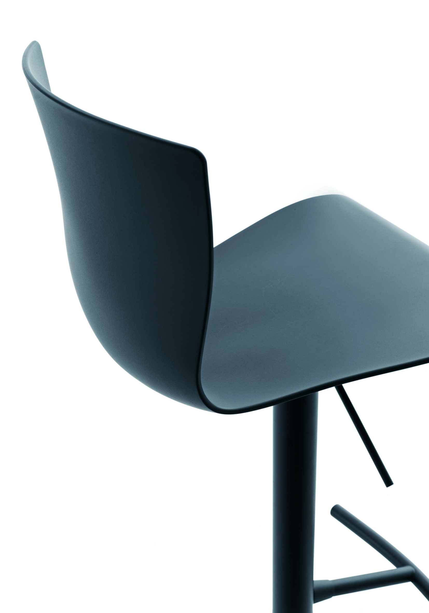 Height-adjustable stool with aluminum and steel structure, steel piston and swivel seat in soft touch polypropylene or covered in eco-leather.