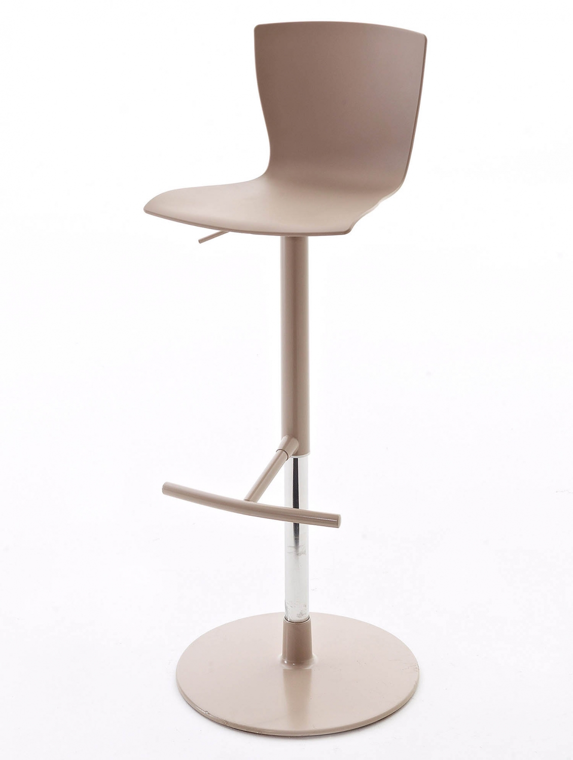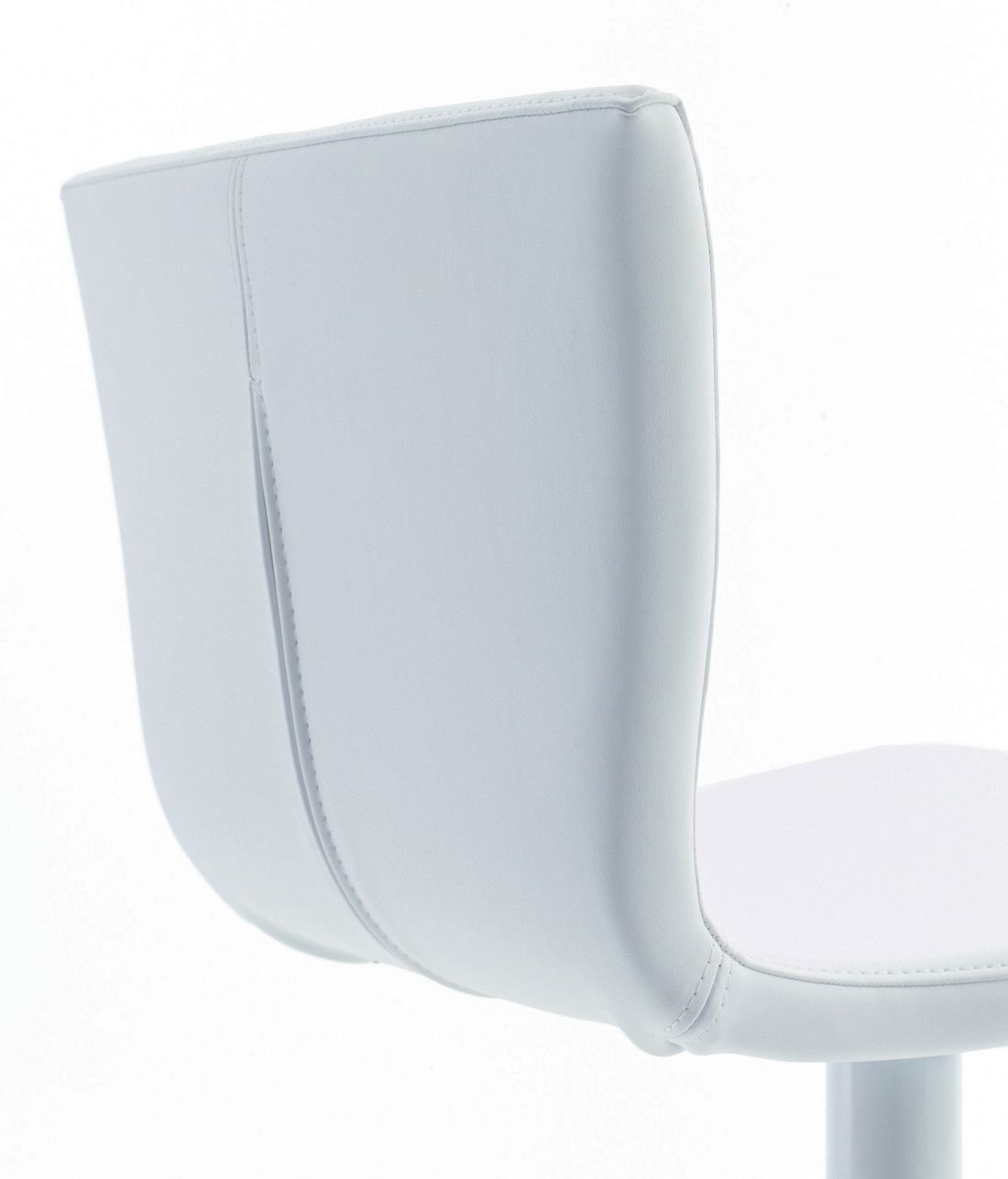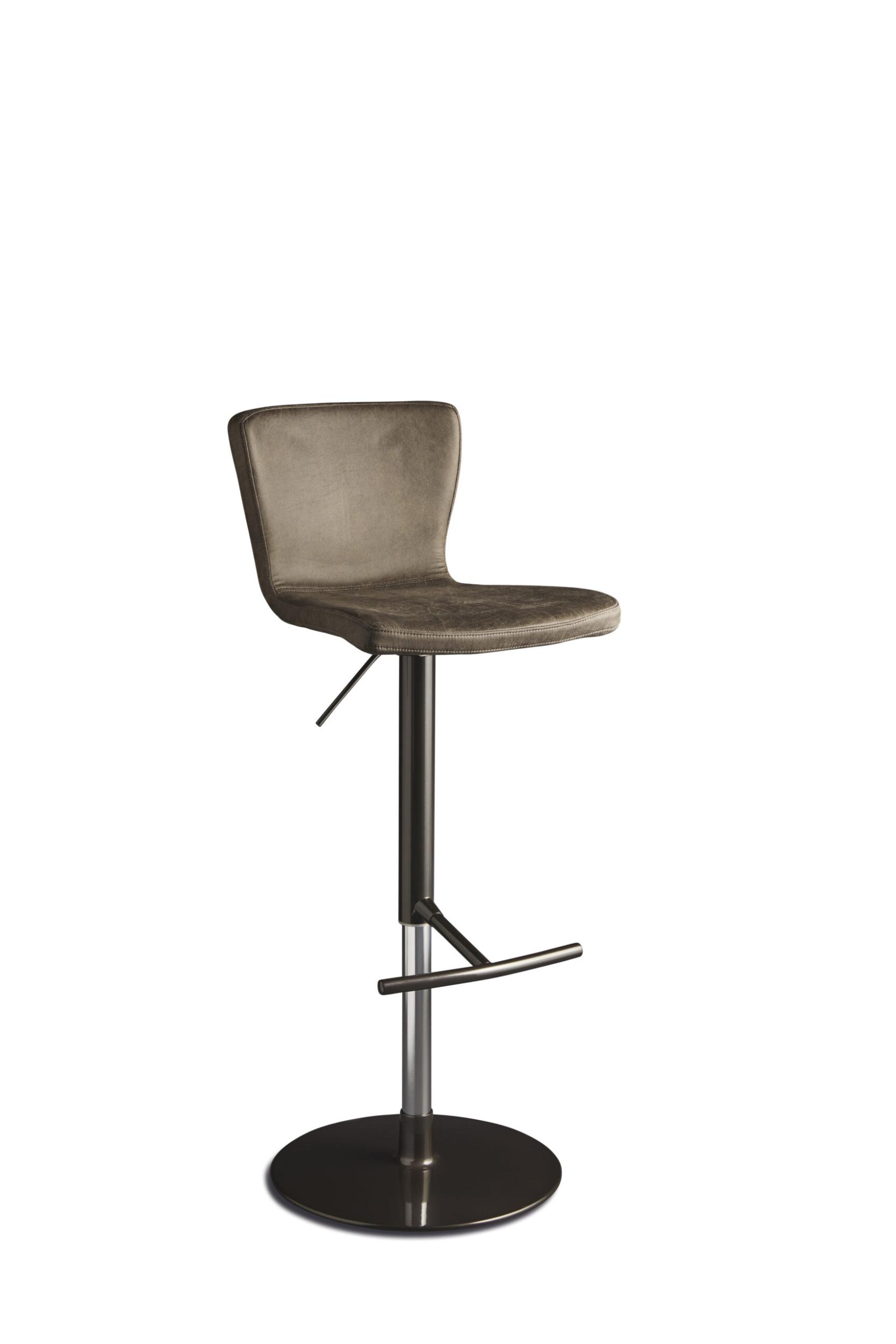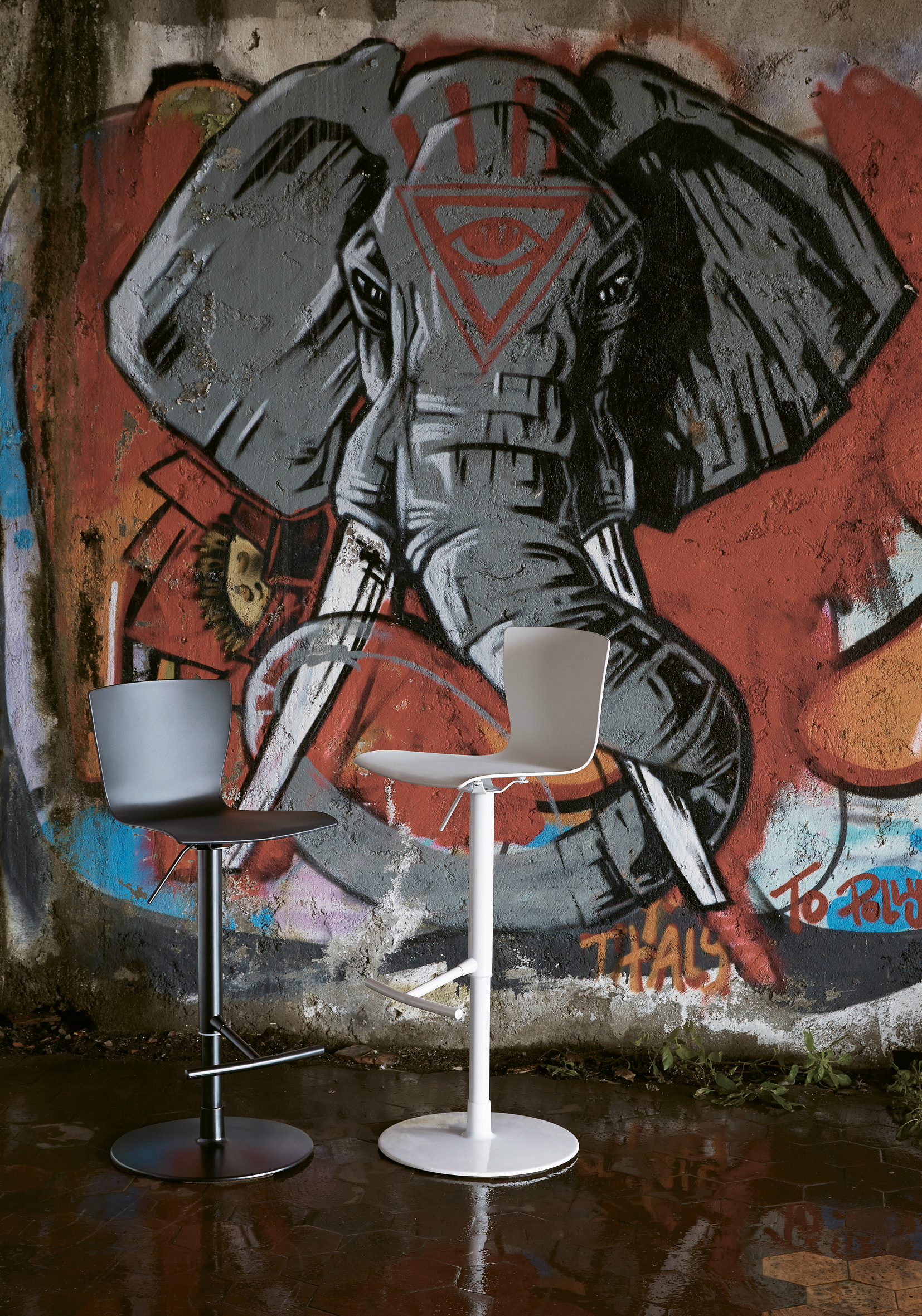 Height-adjustable stool with aluminum and steel structure, steel piston and swivel seat in soft touch polypropylene or covered in eco-leather.