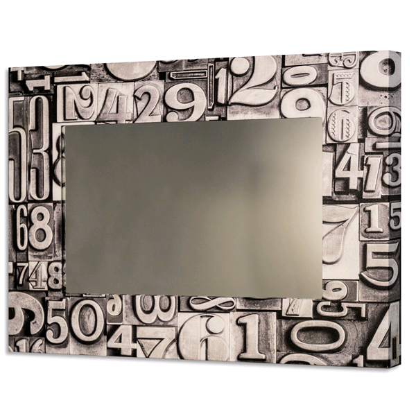 Mirror with wooden structure, shaped and covered with high definition printed canvas