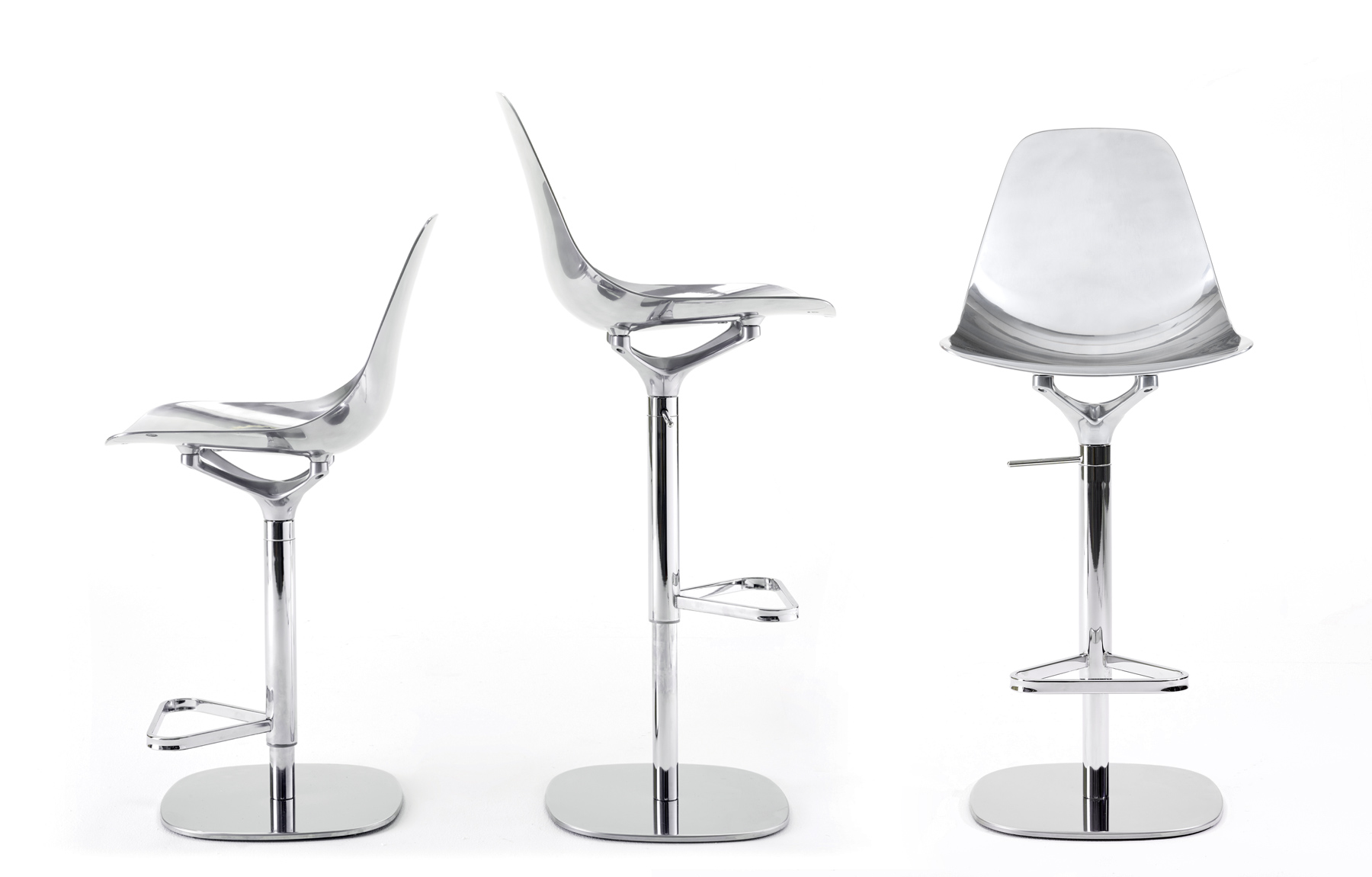 Swivel and height-adjustable stool with die-cast aluminum shell, with structure