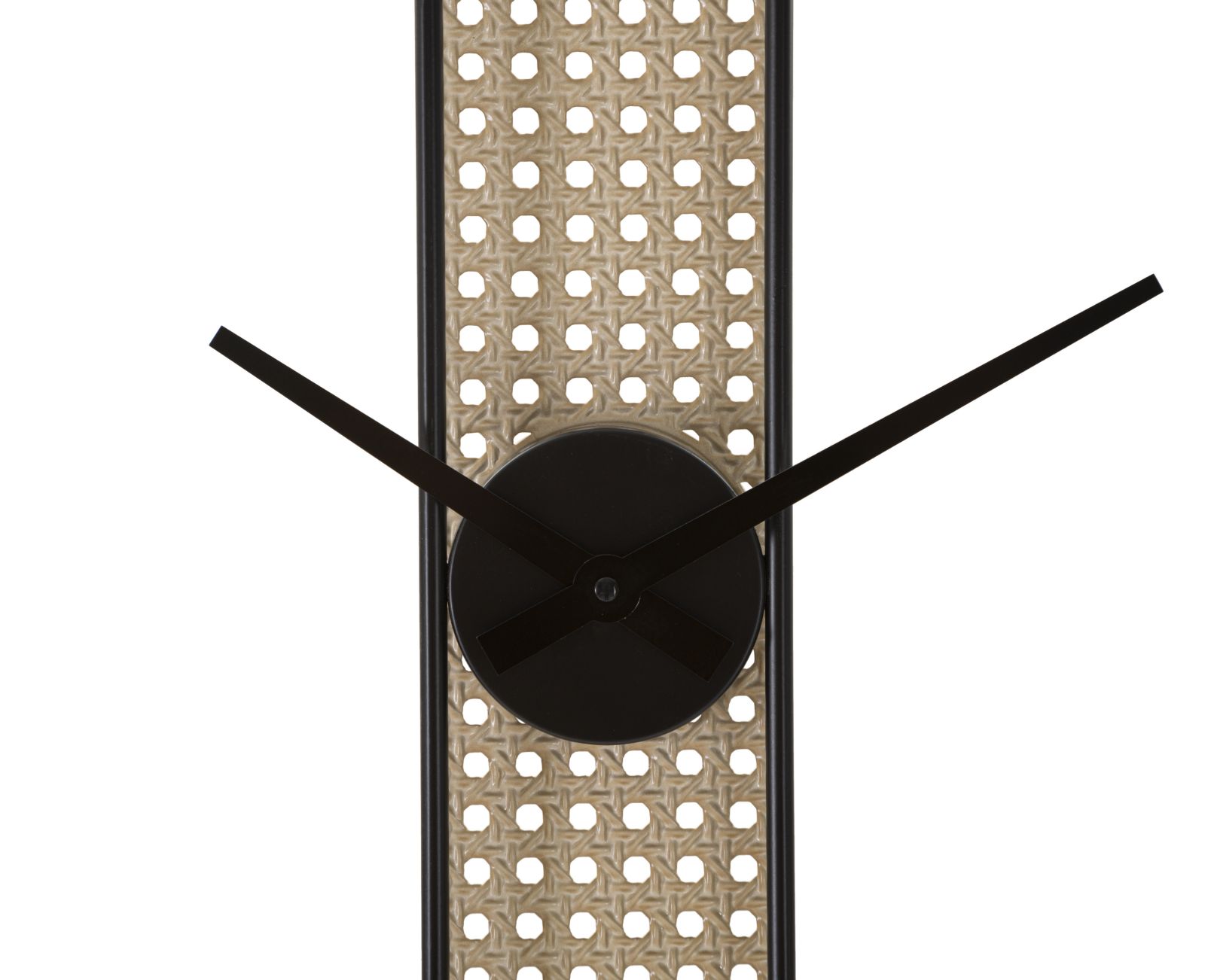 Round wall clock with simple lines embellished with a central decoration with a workmanship that recalls Vienna straw