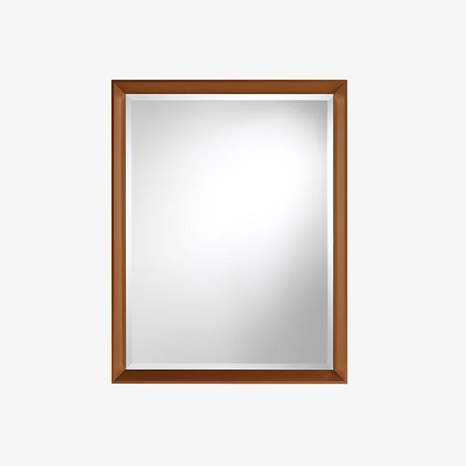 The Riflesso mirror has an aluminum frame, available with a satin chrome or sablé painted finish, and tempered and bevelled mirror glass.