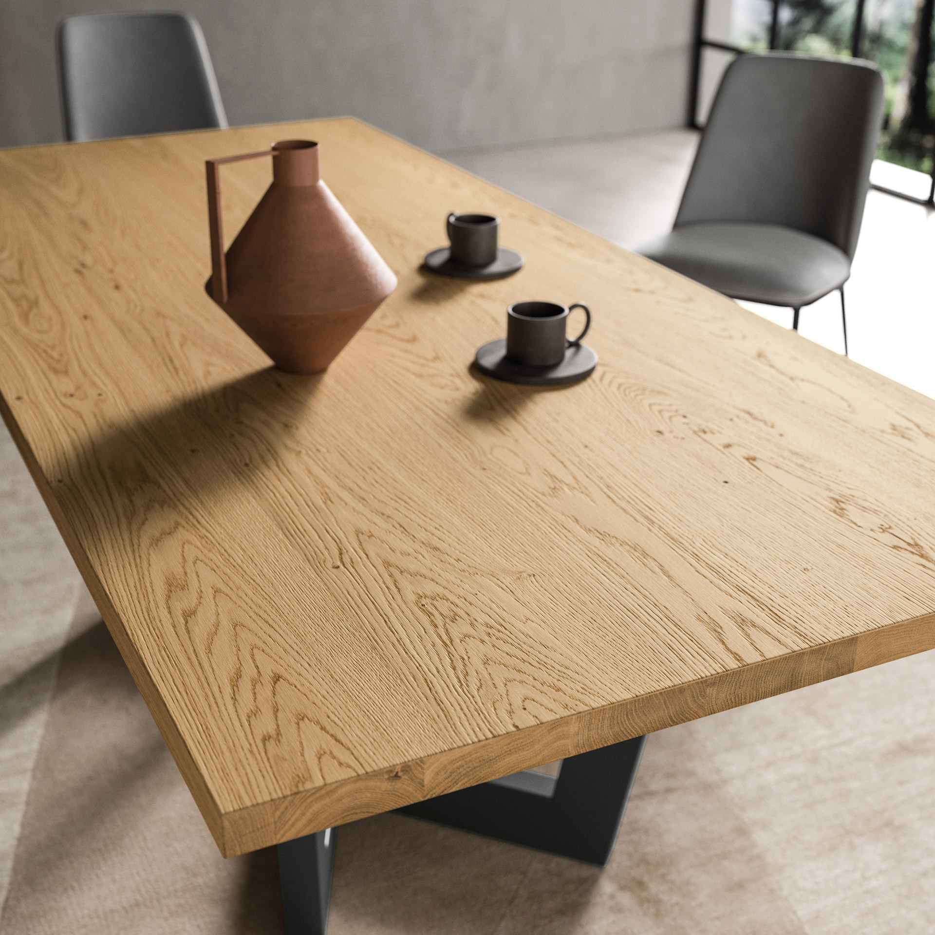 Discover the Rio table, ideal for transforming your dining room or kitchen into a space of class and functionality. Made of real solid wood, this table offers a solidity and resistance that few modern furniture can boast. The surface, smooth and soft to the touch, is enriched by unique grains that tell the story of the wood, adding a touch of authenticity and charm.