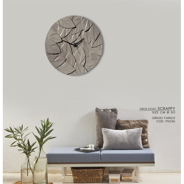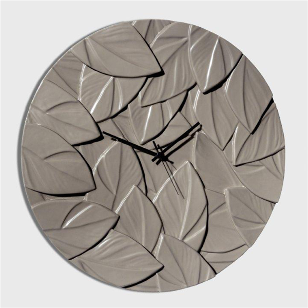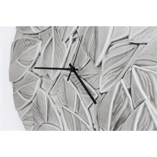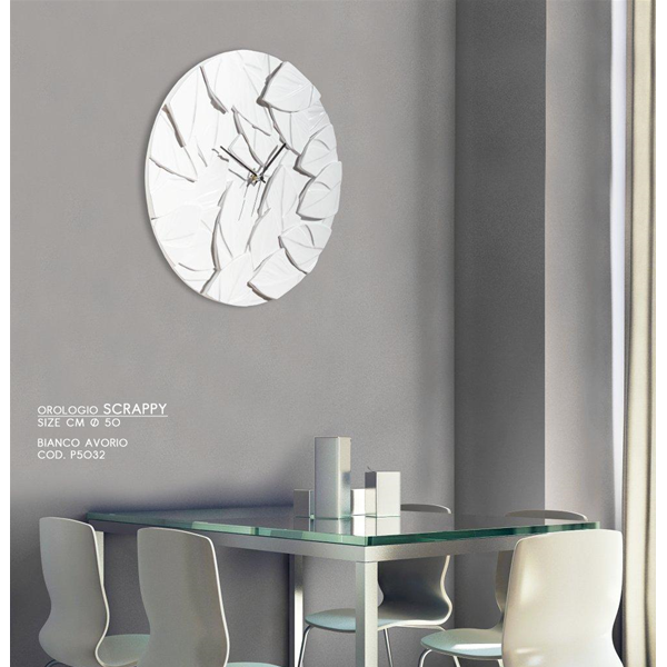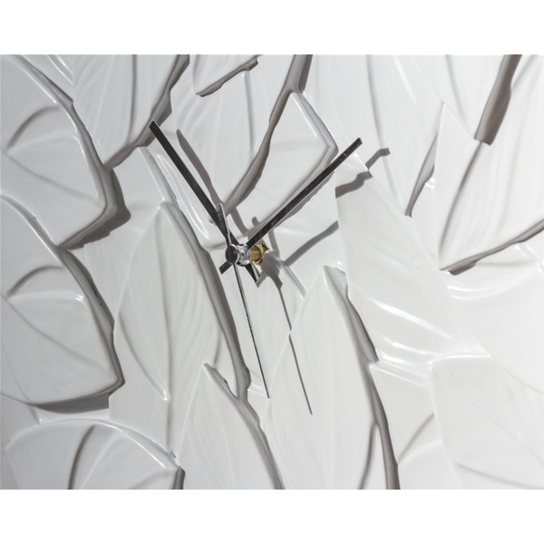 Bas-relief clock on resin with glossy finish and central clock with black hands.