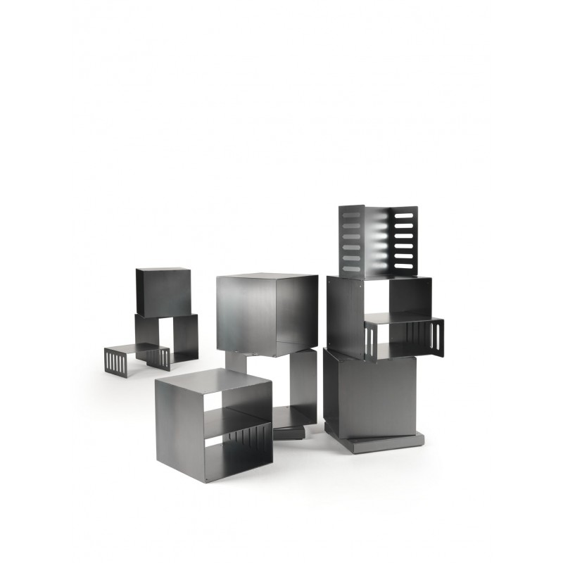With its play of full and empty cubes , Serafino adapts perfectly to modern and industrial style environments, offering a unique mix of functionality and aesthetics. Made of high quality steel , this bookcase embodies the essence of Siderio's design philosophy: a minimal design and resistant materials, a symbol of artisanal excellence and contemporary style.