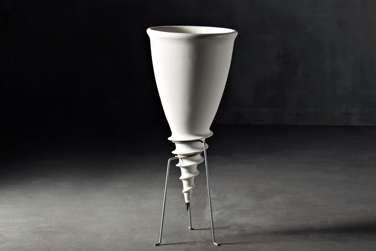 Santavase revolutionizes the concept of vase, no longer resting on the ground, but screwed to its steel tip. Decorate the garden in an original way, alone or in a group, straight or slightly inclined on the ground. A singular vase and absolutely protagonist in the environment in which it is inserted.